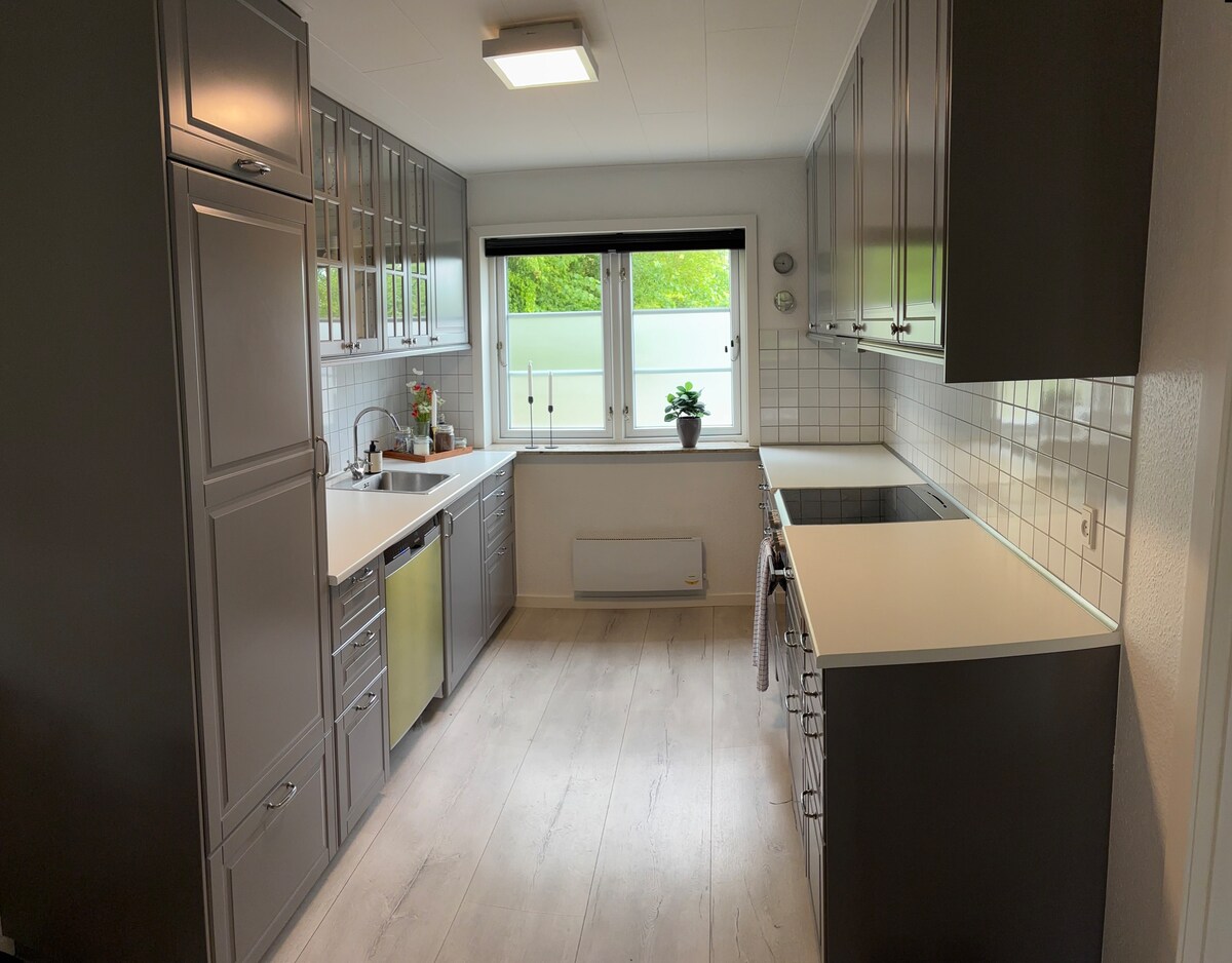 The apartment is on the street level, the house is in a quiet neighborhood. On the garden side, there is a view of the field and forest. The garden and terrace can be freely used by the tenant. Free parking in the yard or on the street. The house contains the apartment downstairs as well as 3 double rooms on the 1st floor, which are rented individually or together. There is a locked room for bicycles.