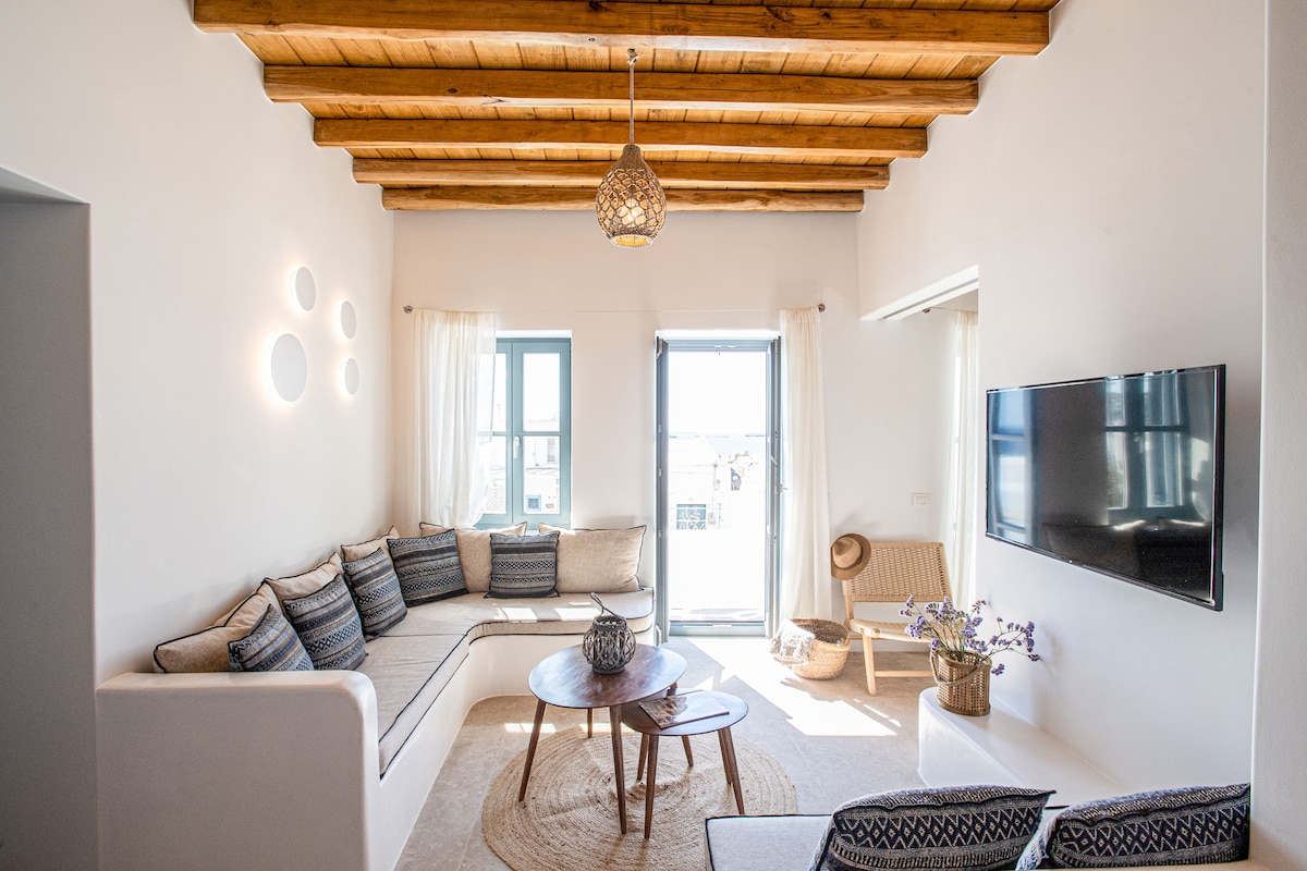 Blueisla Modern Mykonos townhouse! A house in the town with a private Parking. This newly renovated house is located in a tranquil area of the island and offers breathtaking views of the Aegean Sea. The house has all its necessary amenities upgraded and a terrace that gives a picture-perfect panoramic view of the Mykonos town, air conditioning that keeps the house ventilated even during the hot seasons of the year.