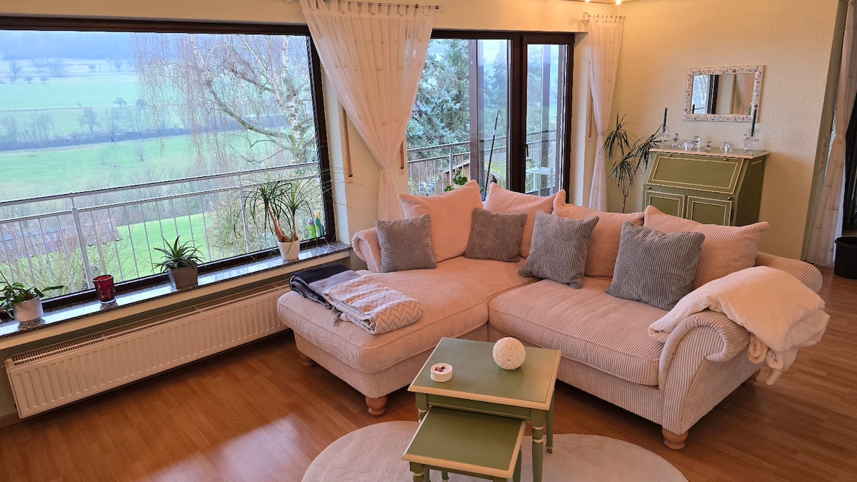 In dieser geräumigen und besonderen Ferienwohnung werden sich unsere Gäste wohlfühlen; Wir befinden uns im Naturpark Saar-Hunsrück, also ruhige Lage; In 5 Minuten zu Fuß finden sie die schönsten Wanderwege vor. Die Unterkunft bietet: Massagestuhl, Wellnessbereich: Sauna und Whirlpool. Und abends nach einem schönen Ausflug können sie auf dem Balkon bei einem Glas Rotwein den Sonnenuntergang bewundern. Gartenmitbenutzung: Lounge mit Gartenmöbel und Blockhütte; Grillen; Autobahnanschluß A1: 4 km.