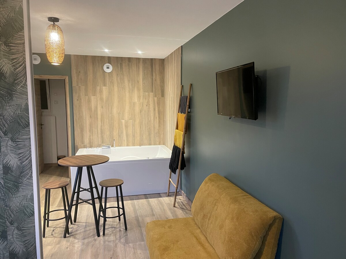 Relax in this quiet and stylish space. This studio is attached to the house but has its own garden and is totally independent. You can relax in its jacuzzi and enjoy the calm of the countryside. The studio is located 10 minutes from the city center of Evreux, 7 minutes from Intermarché. The mini-market bar is a 10-minute walk away. You will be 40 minutes from Rouen, 1 hour 20 minutes from Paris. On weekdays it is sometimes possible to arrive earlier, or to book for the day at the same price as for the night.