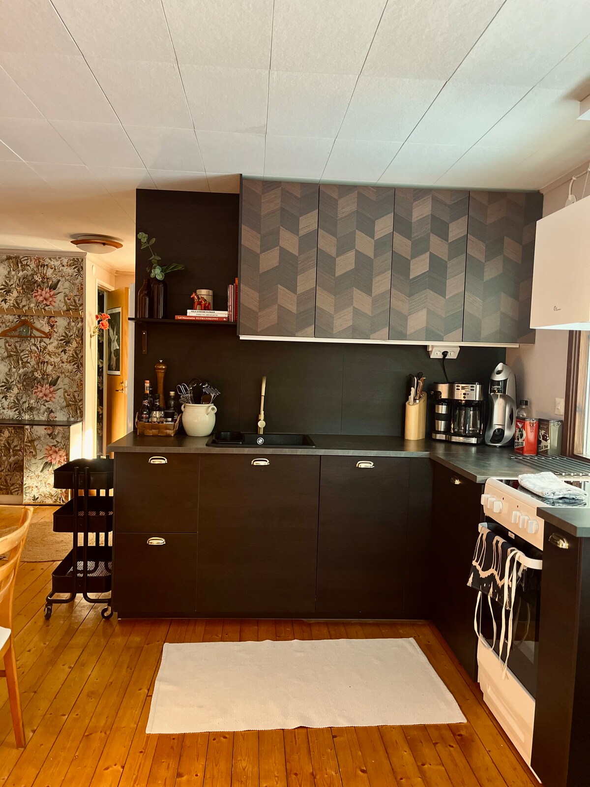 Idyllic summerhouse in the forests of western Sweden! Welcome to a small summer house with that little extra, nicely located in the forest with a large sunny terrace and a minute's walk to the lake (300m) Ånimmen for swimming and fishing. Tasteful newly renovated interior with two smaller bedrooms, possibility of a third in open plan (separable with drapery), as well as a combined kitchen and living room with cozy fireplace. Spacious terrace in lush forest garden where chanterelles and berries usually coexist with moose and deer.