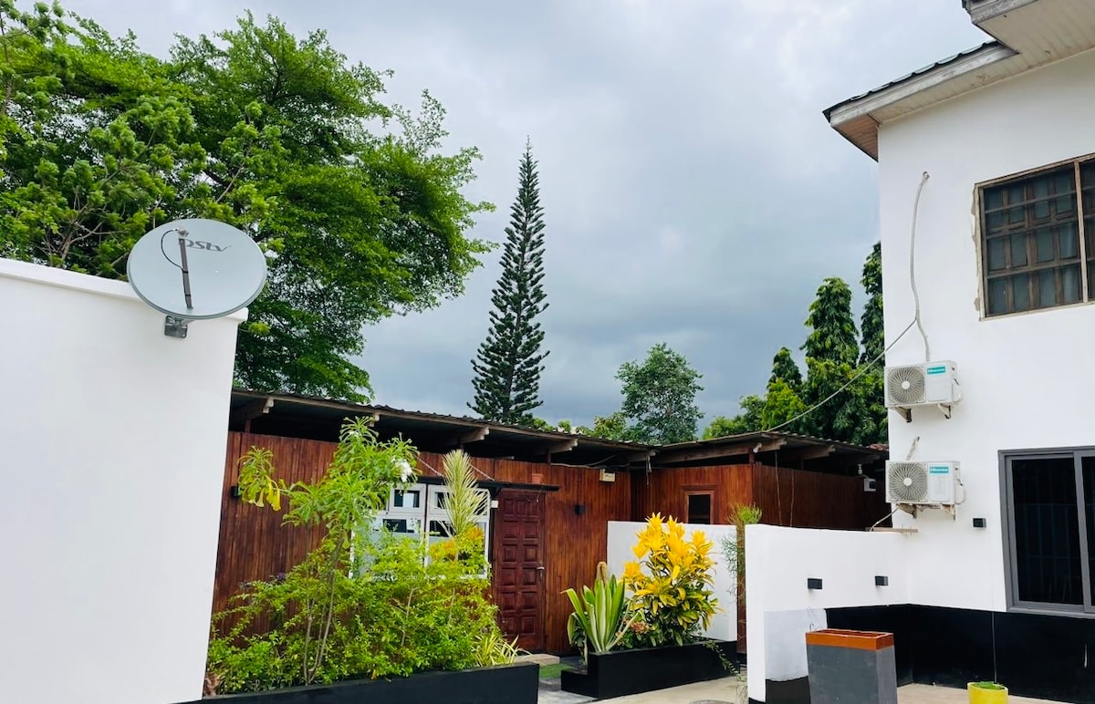 Summerville Cabin – a cozy, modern studio in West Airport, just 5–8 minutes from Kotoka International Airport. Compact yet fully equipped for short or long stays, it features a kitchenette, microwave, free Wi-Fi, Smart Tv and free cleaning during your stay. Linens are refreshed for stays over 3 days. Enjoy comfort, convenience, and security in one stylish space — perfect for travelers seeking a peaceful stay in the heart of Accra