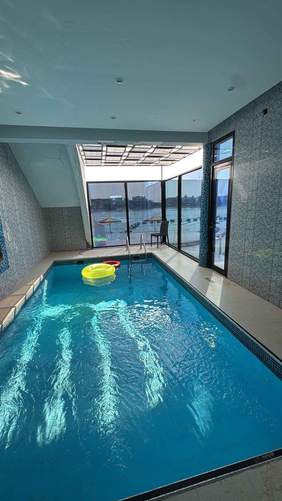 The entire group will be available in this spacious and unique accommodation. The unit is conveniently located, a 5-minute walk to the sea and Marina Sports Park. Close to Al-Nouras Island, the waterfront and entertainment places in Yanbu Industrial City. It also has a private entrance and a private courtyard. Smart access to the unit by a secret number or fingerprint.