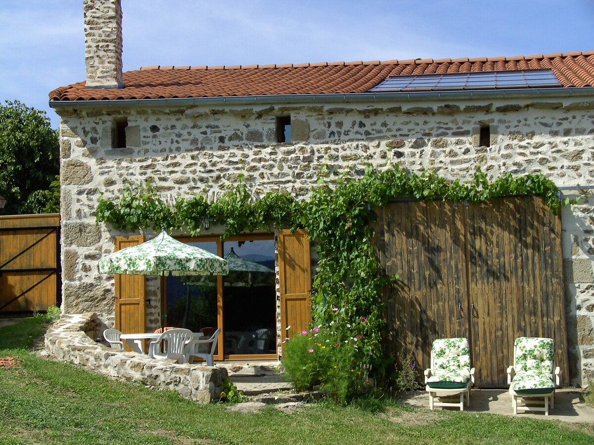 The house is a recently built and welcoming chalet. You will enjoy a region ideal for hiking or discovering a rich local heritage. Located in a peaceful hamlet, you will be welcomed by Sam and Krisha, our friends and English neighbors. At 10 minutes from the highway (A89), between Lyon and Clermont-Ferrand, the house can welcome 4 adults or a family with two children properly. The breathtaking view invited us to built this house, we want to share it with you...