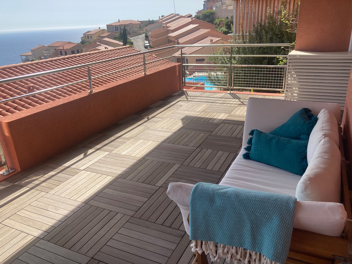Vacation home with stunning views, ideally located on the seafront between Collioure and Port-Vendres. Access to coves and beaches is a 1-minute walk away. Two beautiful terraces allow you to dine in a privileged setting and relax on comfortable sun loungers facing the sea. Terraces equipped with outdoor kitchen, plancha, table, chairs, large umbrella, deckchairs. WIFI PRIVATE PARKING SPACE SHEETS AND TOWELS NOT PROVIDED