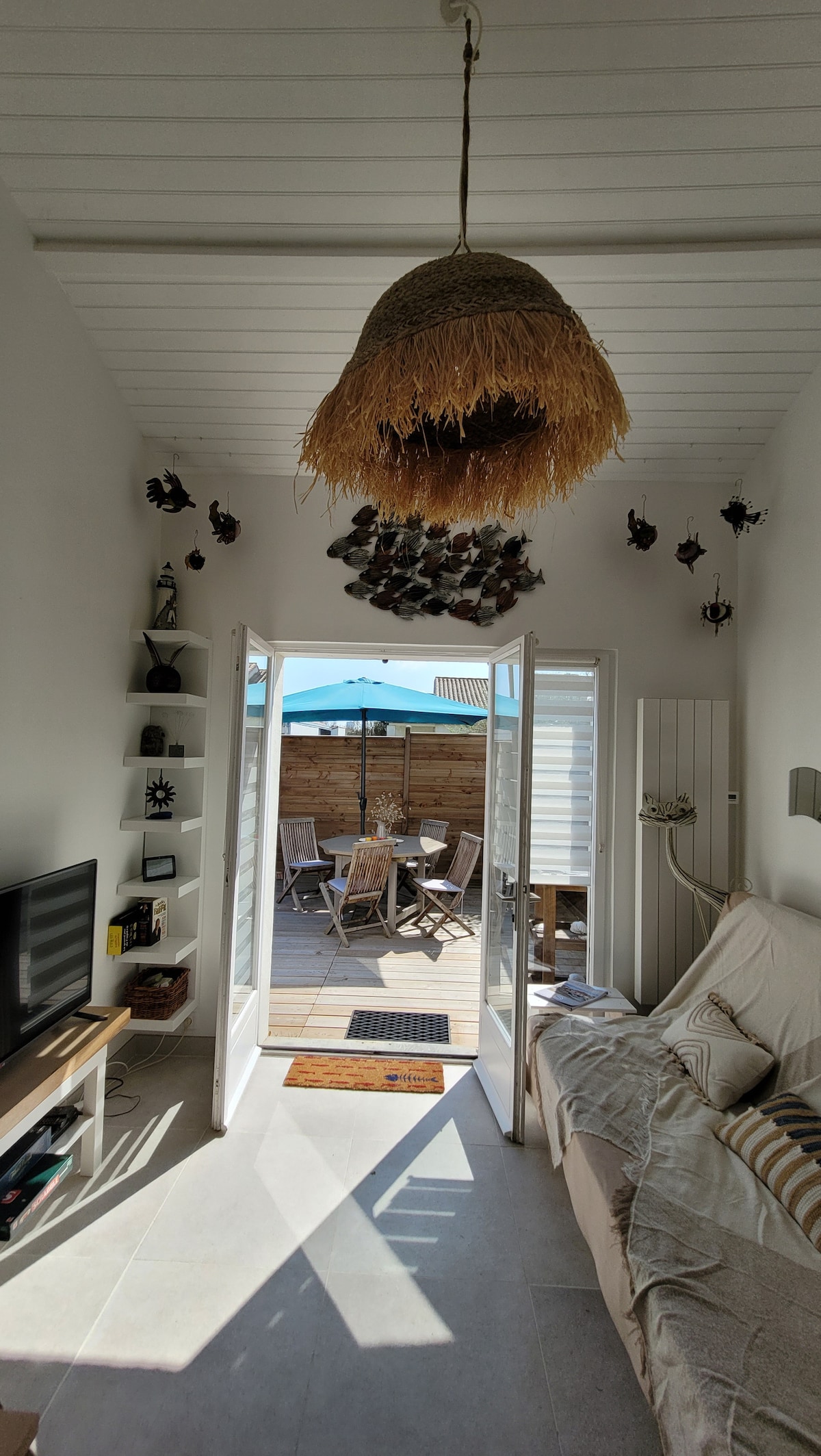 Nice little typical 40 m² house in Île de Ré, composed of a first night part (the annex) with a bedroom, a bathroom-toilet and dressing area! A second part (the living room) with a fitted kitchen, dining area, living room with corner sofa and library desk. In the Patio, a large table and benches, bar and plancha. 2 bikes with anti-theft, bike path start 50 m away Check-in: 3 p.m. - personalized welcome or self check-in (lockbox) Checkout: 10 a.m.
