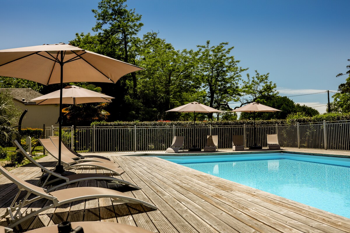 Mediterranean-style family cocoon, nestled in the heart of the vineyards between the Gironde estuary and the ocean (20 minutes away). This unusual place bathed in light is a perfect base for exploring the Médoc. It will be easy to enjoy the vineyards, the surrounding wild beaches, and the waves for surfers looking for tranquility. The house lends itself to relaxation with its pool and "slow life" atmosphere.