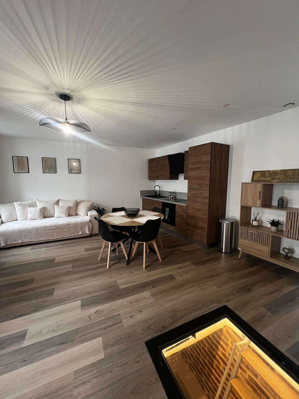 Apartment with vaulted CELLAR (the cellar is strictly forbidden for those under 18). Located a 3-min walk to Roanne train station and a 10-min walk to the city center. Fully tastefully decorated, this apartment is ideal for a family or group of friends looking for discovery or professionals on the move. You are on the ground floor of a building we own, giving access to the building's private courtyard.
