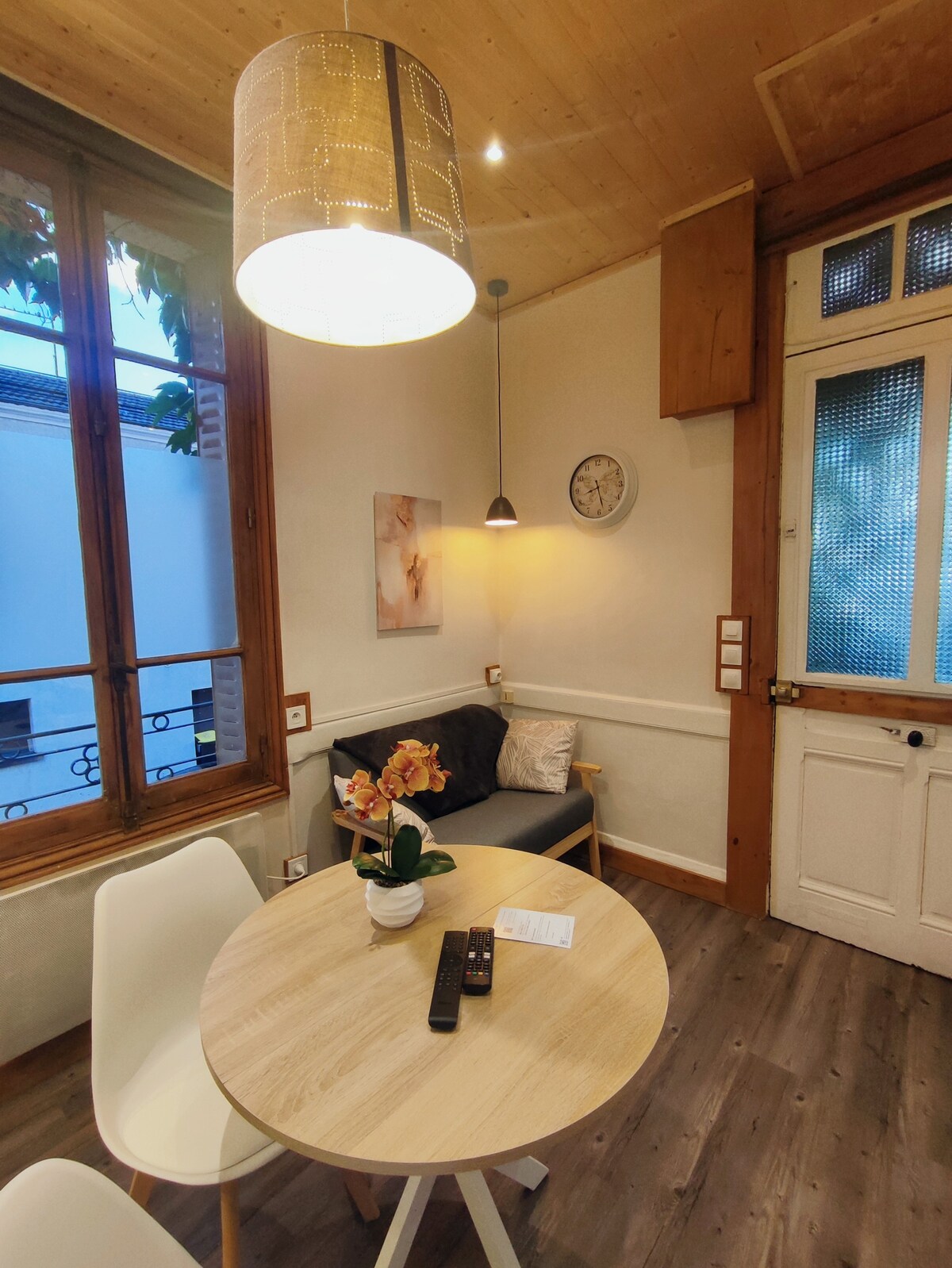 Stay in this charming, fully renovated, bright studio on the 1st floor of our house (independent entrance) in a quiet environment. House located in a cul-de-sac, surrounded by gardens. Close to the SNCF train station (8 min walk), the city center (10 min), the IUT (900 m), restaurants and cinemas. Free parking in the cul-de-sac.