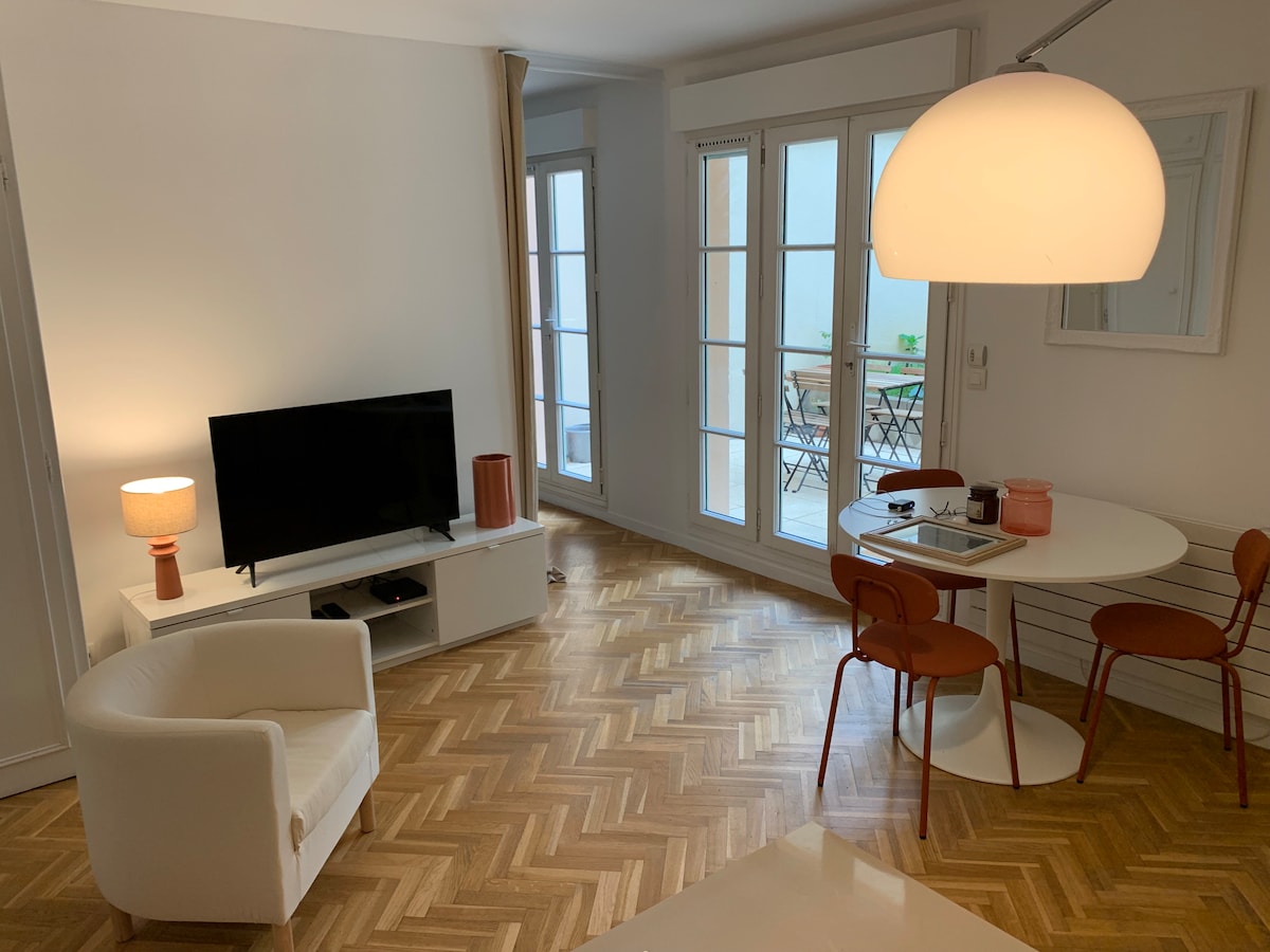 Welcome to our charming apartment in the heart of Rambouillet. Located at the bottom of a quiet private courtyard, a 5-minute walk: - the train station - the shops in the center - the castle park The apartment is located in our house but has its own entrance. A covered parking space is reserved for you in our courtyard, right across from the apartment. Whether you come on foot, by bike, by car or by motorcycle, we will be happy to welcome you to our home!