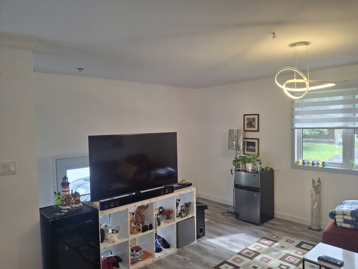 Welcome to our newly renovated accommodation in the basement of our house. Come and enjoy a stay rich in memories and unforgettable experiences. You will have access to a private entrance and large parking lot with an outdoor electric car outlet. A welcome basket will be offered.