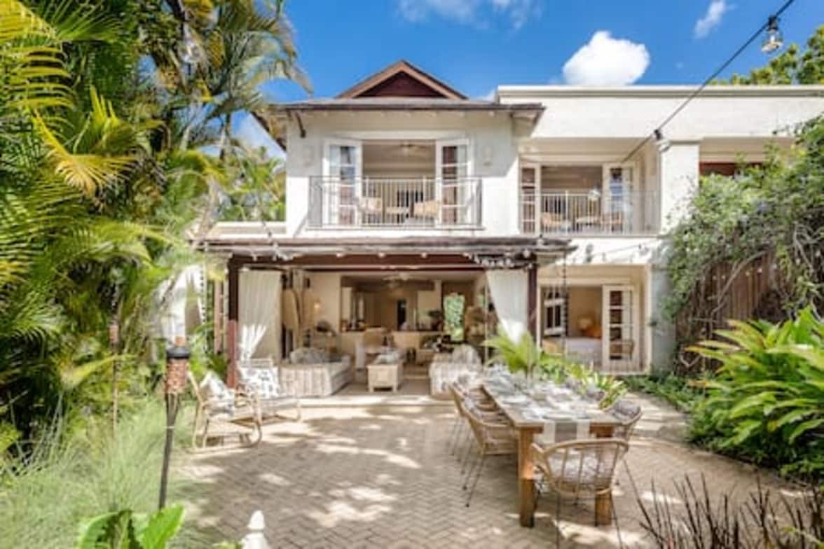 Tucked away on the beautiful West Coast of Barbados just minutes from the beach, this tropical villa is the ideal place to relax and enjoy island life. As you enter the Greek-styled blue gates and the front garden, the peacefulness of the villa will surround you - tropical trees, flowers, and secret nooks - you'll want to explore every inch. Through the airy courtyard with a comfortable lounge area and jacuzzi, you'll find the private pool with sun loungers and an umbrella by the pools edge.