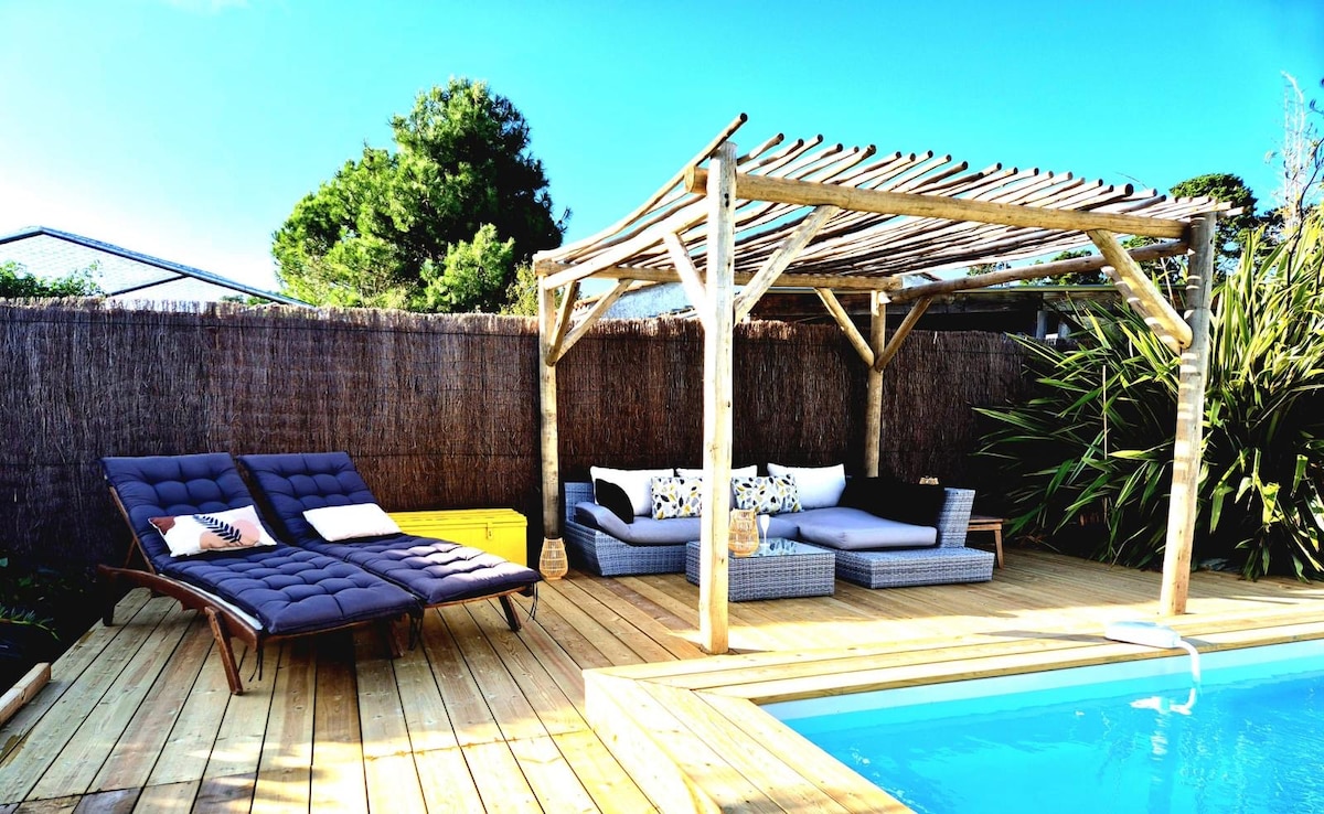 The rental is located in a leisure residence in the lake area, quiet near Les Sables-d'Olonne. This is a suite with a separate bedroom and bathroom, a beautiful terrace covered with a fully equipped bioclimatic pergola, and a Jacuzzi on the outdoor terrace. The whole space is private. It is part of a larger set of cottages that is our home. COVID INFORMATION: Hygiene and cleaning measures are followed to the letter by your host.