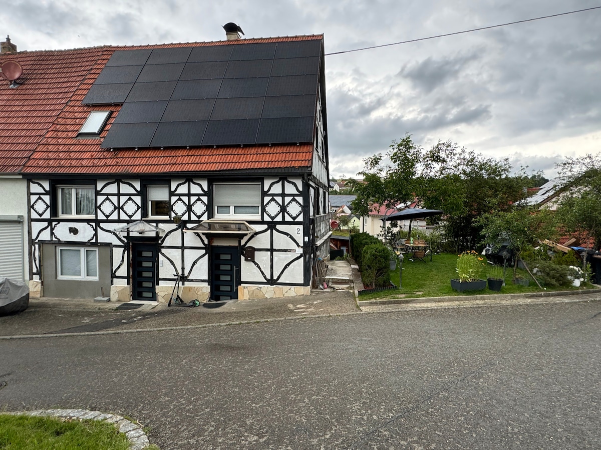 Feeling of happiness: Vacation home ALB-BISS *HIKING ROUTES *SPORT *ART *CULTURE *BEAUTIFUL LANDSCAPE *MOUNTAINS *Swimming ponds *Bob track *Bicycle shops *Canoe tours *Paragliding *Gliding *Skiing *THERMAL BATH *Half-timbered towns *Castles *Ruins *Museums (primeval) *med. care *wine taverns *cafes *restaurants > Well maintained *quiet *well-equipped apartment *Beds: with topper (soft) > Garden: chairs and hammock overlooking the valley. > Gallery > Transportation by us possible. * It's great here! Welcome.