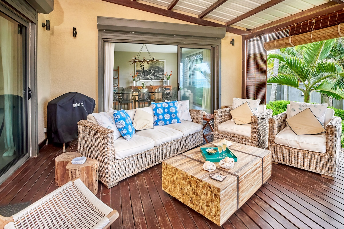 Wake up to the gentle murmur of the waves in this picturesque thatched-roof house, nestled on the Roches Noires lagoon. With its double bedroom perched upstairs, enjoy stunning views of the palm trees and the lagoon. The garden extends to a natural beach just steps from the terrace. No need for a swimming pool: the lagoon becomes your natural swimming pool The house is equipped with everything you need for a comfortable stay.