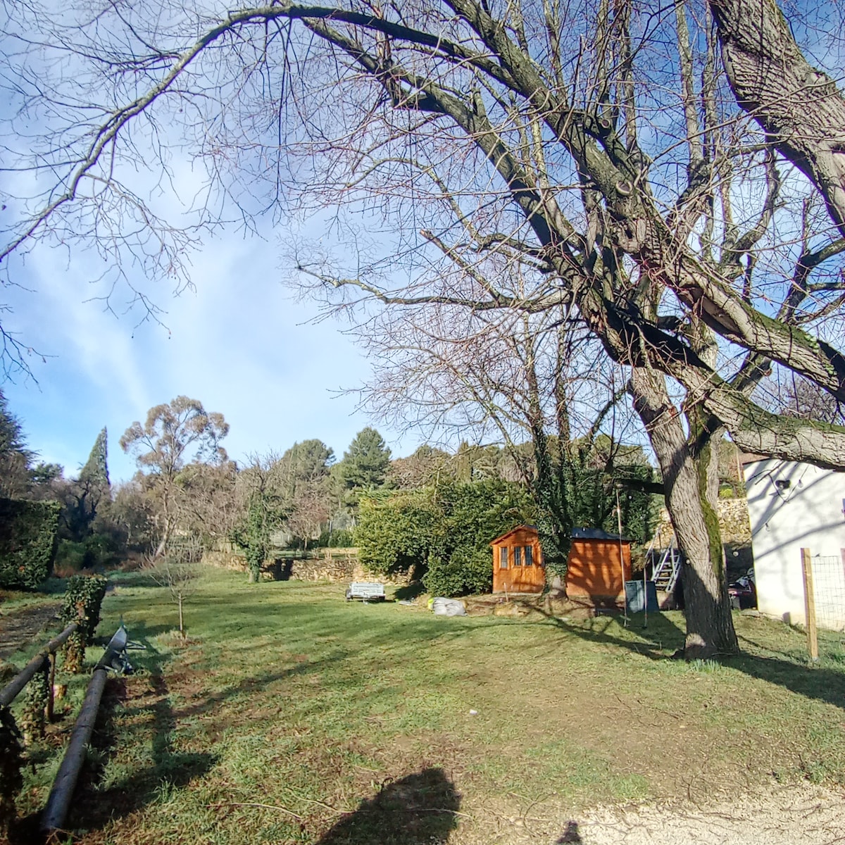 Very nice studio located in a green setting, 10 min walk to Lake Esparron de Verdon and 20 min walk to the village with its nautical center. You can relax in the quiet garden. You will have the choice of views of the village and its surrounding hills or views of the garden. It is adjoining our house but totally independent.