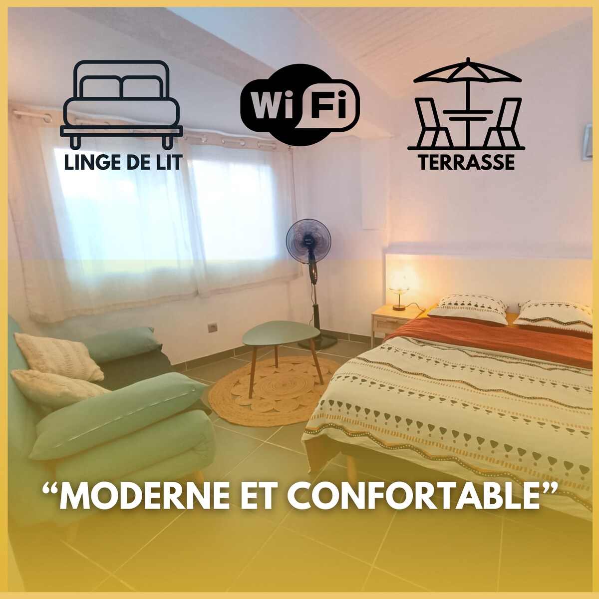 Un très beau logement neuf climatisé dans un esprit cocooning, situé au calme secteur résidentiel sur une jolie propriété. Un T2 lumineux , cuisine et salon ,une chambre et une salle d’eau séparée . Logement indépendant avec un extérieur (terrasse et côté jardin), prêt à vous accueillir. Situé à Torreilles village , à 5 minutes de toutes commodités tant pour le centre du village que pour les extérieurs commerces et 5 kms de la plage et à 10 km Perpignan Piste cyclable du logement à la mer
