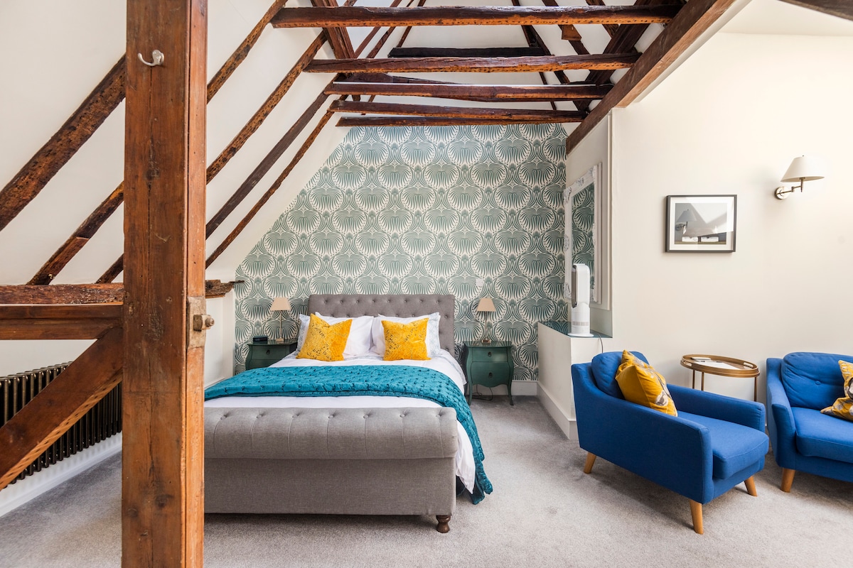 Our beautiful William Penn Wing comes with a lounge and two large rooms. The dining area does not have a kitchen but does include a fridge freezer, toaster, kettle, microwave, cutlery, crockery and seating. Upstairs you will find the William Penn Suite, a very large room with a sofa area and king sized four poster bed with en suite. Named after the founder of Pennsylvania who once lived here, It’s located in our 16th century country house, which is a 20 minute walk from the Beach.