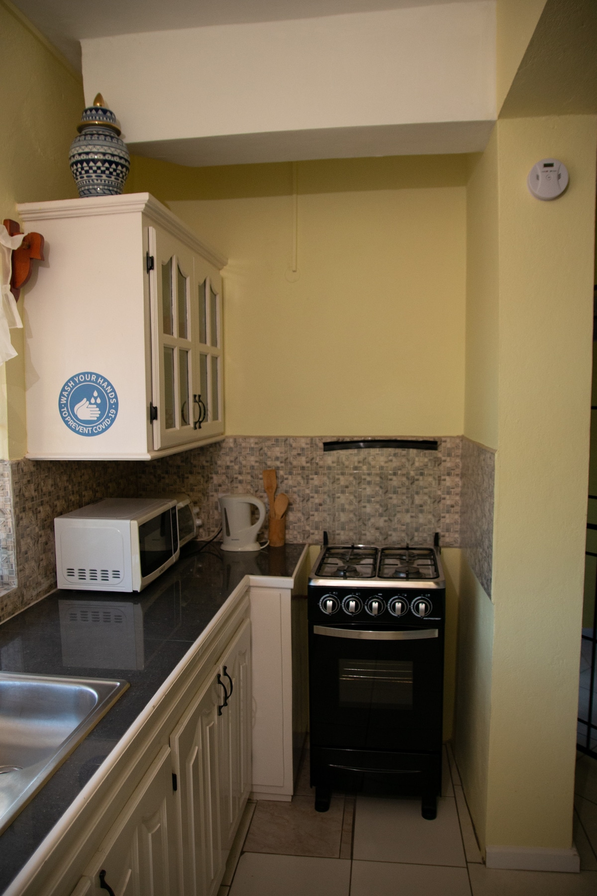 The Private Oasis is the biggest and most luxurious bedroom of all the five spaces listed at the Corner House. A very well lit, spacious, fully ventilated, air conditioned bedroom with its private on suite bathroom. The Northern window gives a panoramic view of the suburban community as well as a distant glimpse of the city and the shiping port. The room can sleep up to three guests comfortably. Guests can request separate sleeping ,or couples can enjoy the super comfortable king size bed.