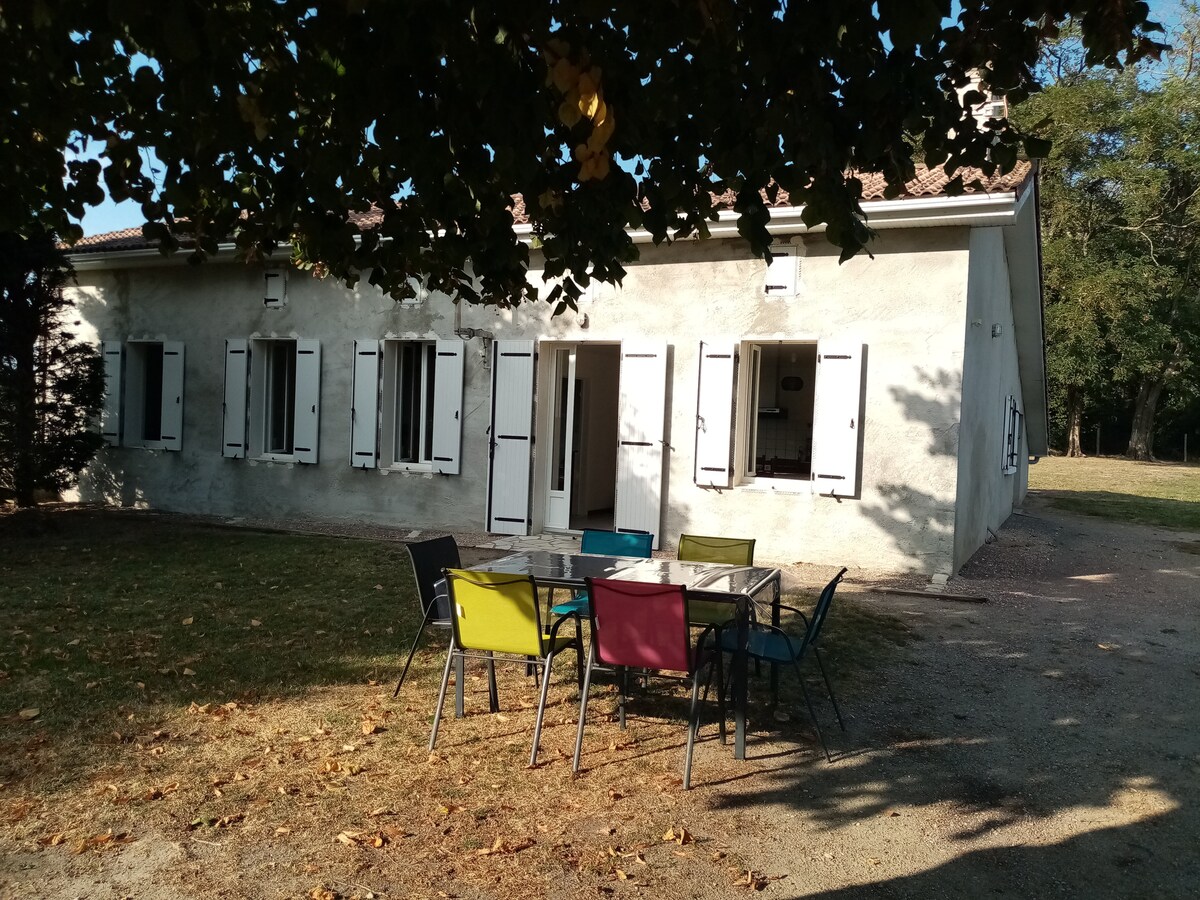 In the countryside, close to the town center, in our courtyard, a small 35 m2 house, independent for your tranquility. Perfect for accommodating 2 adults and 2 children comfortably while staying in our charming region or while traveling for work. The accommodation has all modern comforts. Close to BORDEAUX and SAINT EMILION (30 min) 5 min walk to the town center with all amenities.