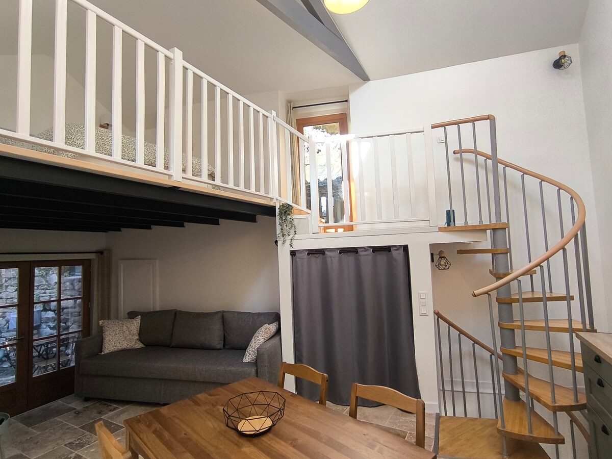 This small semi-detached village house consists of a bright room with mezzanine. Ideally located to discover the Cirque de Navacelles, (1 km), the megaliths, the causses and the Cévennes (UNESCO, Grand Site, Park, etc.). The house is on the Chemin de Saint-Guilhem and at the start of many family or sports walks. It has internet (fiber). Nearby: bowling alley, playground, fitness trail, tree climbing, fishing, swimming …. Market and shops 30 minutes away.