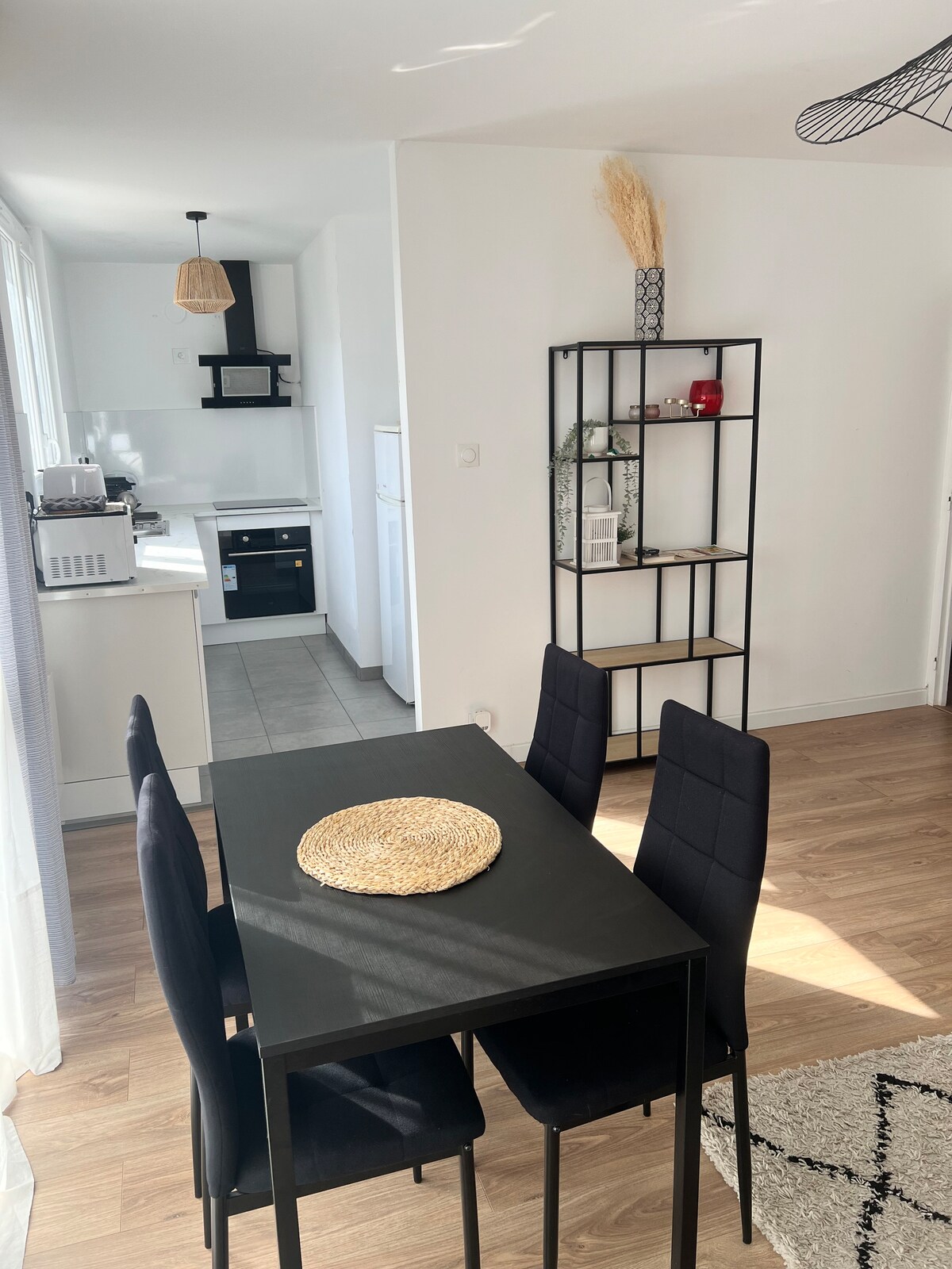 Composed of a large cozy living room with a large sofa bed and a real dining room, a bedroom with a double bed, separate bathroom and toilet. Functional and equipped kitchen that will allow you to have lunch and cook easily. Small snack offered on the 1st day: tea, herbal tea, coffee, madeleines. Towels provided, bed made on arrival. Large storage closet to store your large suitcases and personal belongings.