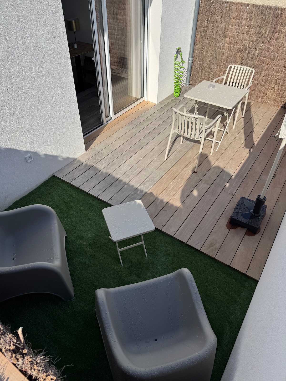 12 min to La Rochelle, Chatelaillon, Îles de Ré, Oléron, Aix, Fort Boyard, nearby amenities, 10 min drive. /2 Z.C. STD 24 m² in a quiet pavilion, village of La Jarne. Independent entrance: living room/kitchen, 1 bed 140, shower room/WC. Dressing room, private parking ext. small courtyard 2 tables, chairs and armchairs, electric BBQ. Parasol, Preference given to weekly stays, high season minimum 7 nights. Possibility of monthly rental after September 15, contact me. Pets not allowed, no smoking.