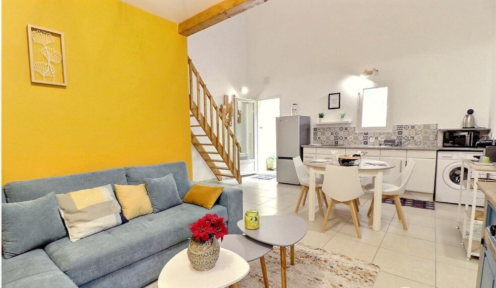 Relax in this quiet accommodation in the heart of the Monts d'Ardèche Natural Park, located 10 minutes from the Neyrac les Bains thermal baths, 25 minutes from Aubenas and 30 minutes from the Ardèche plateau. The cottage has been completely renovated with the charm of the old, it is located on the ground floor of our typical Ardèche stone house. Studio for 2 people with a living room with sofa bed and bright kitchen thanks to its bay window overlooking the Ardèche mountains.