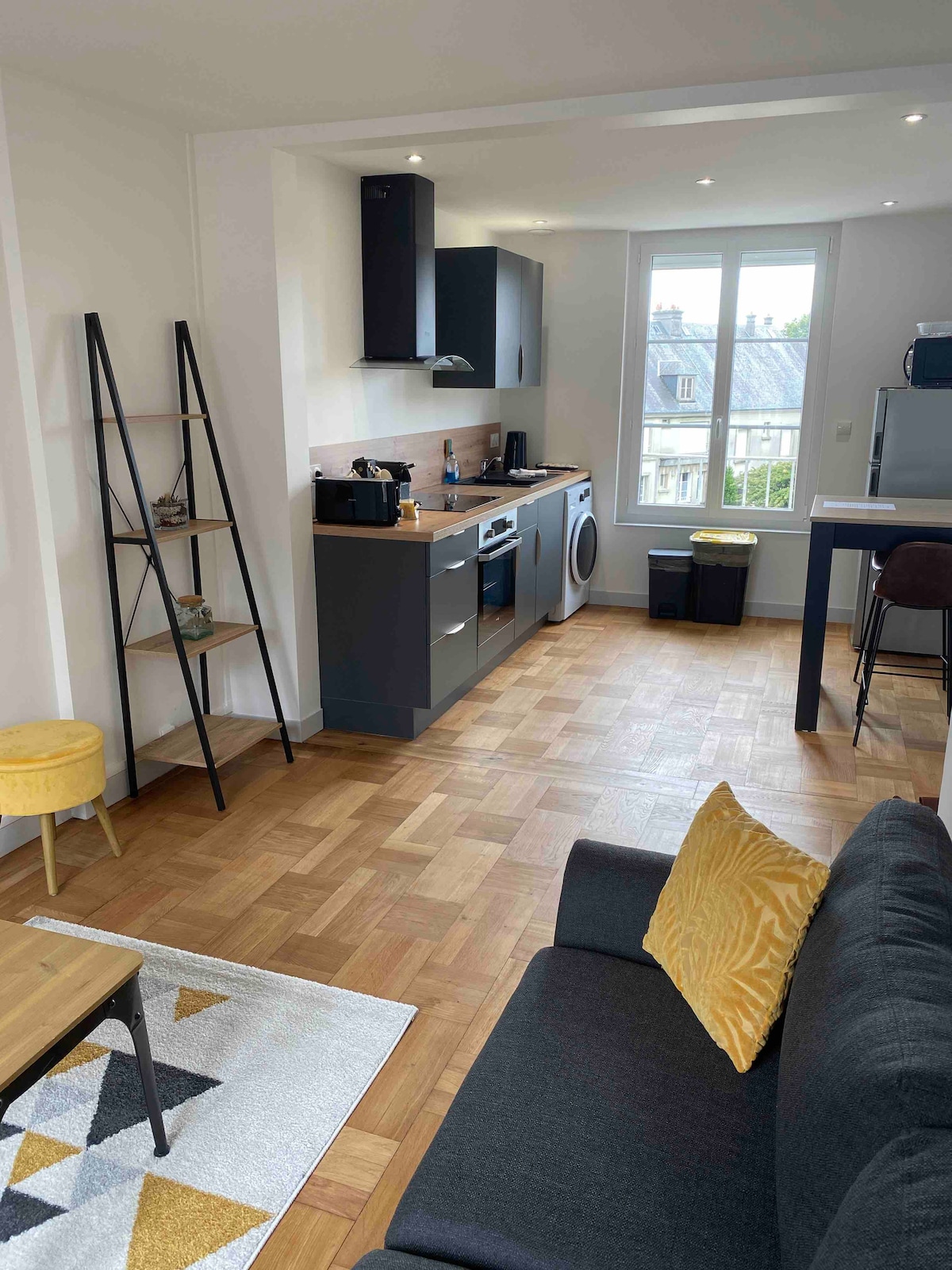 Enjoy a refurbished 37 m2 F2 accommodation in the heart of Coutances. All shops and the cathedral are nearby. The beach is only 12 km away. The apartment is located on the 2nd floor in a small, secure 3-story building and has an intercom.