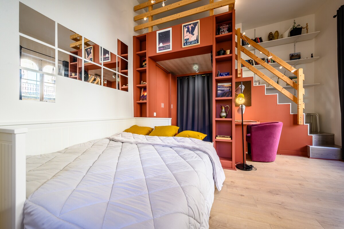 Welcome to the heart of the historic center of Figeac. Our renovated space combines modernity and history, offering old charm, facilities and comfort with two 160x200 beds, including a Japanese futon for a unique sleeping experience. WiFi, smart TV, amenities nearby, walk through the city. Enjoy serenely the shaded and private terrace. Discover with pleasure the charm of the Lot, a unique experience where past and present intertwine harmoniously.