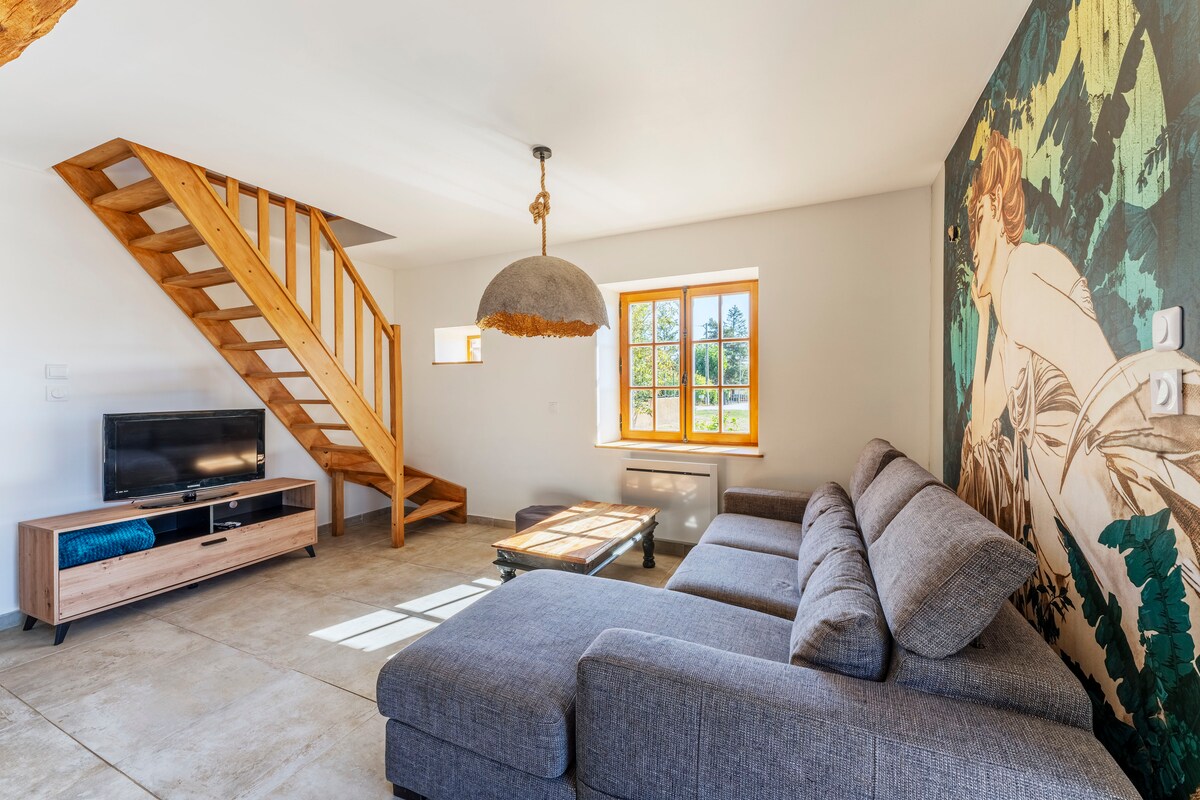Charming exposed stone cottage, nestled in the Beaujolais hills, between vineyards and cherry trees. Completely tastefully renovated with quality materials, it will offer you all the comforts to recharge your batteries in the calm of the countryside and enjoy its small private garden. Just 1/2 hour from Lyon, you can discover the vineyard, the golden stone villages or many hikes on foot or by bike. Electric charging station available. We’re glad you’re here.