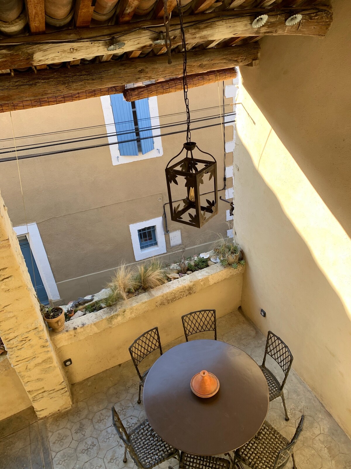 In the heart of the old center of the charming village of Vallabrix, 7 km from the superb Ducal city of Uzès and 3 km from St Quentin la Poterie (all shops) and many tourist sites (Pont du Gard, Hiking, horseback riding, tree climbing, etc.) Character stone house completely renovated, combining charm and modern comfort. Kitchen equipped with dining room and overlooking the beautiful covered terrace. TV lounge library. 3 beautiful bedrooms, 3 bathrooms including 2 with toilet plus a guest toilet.