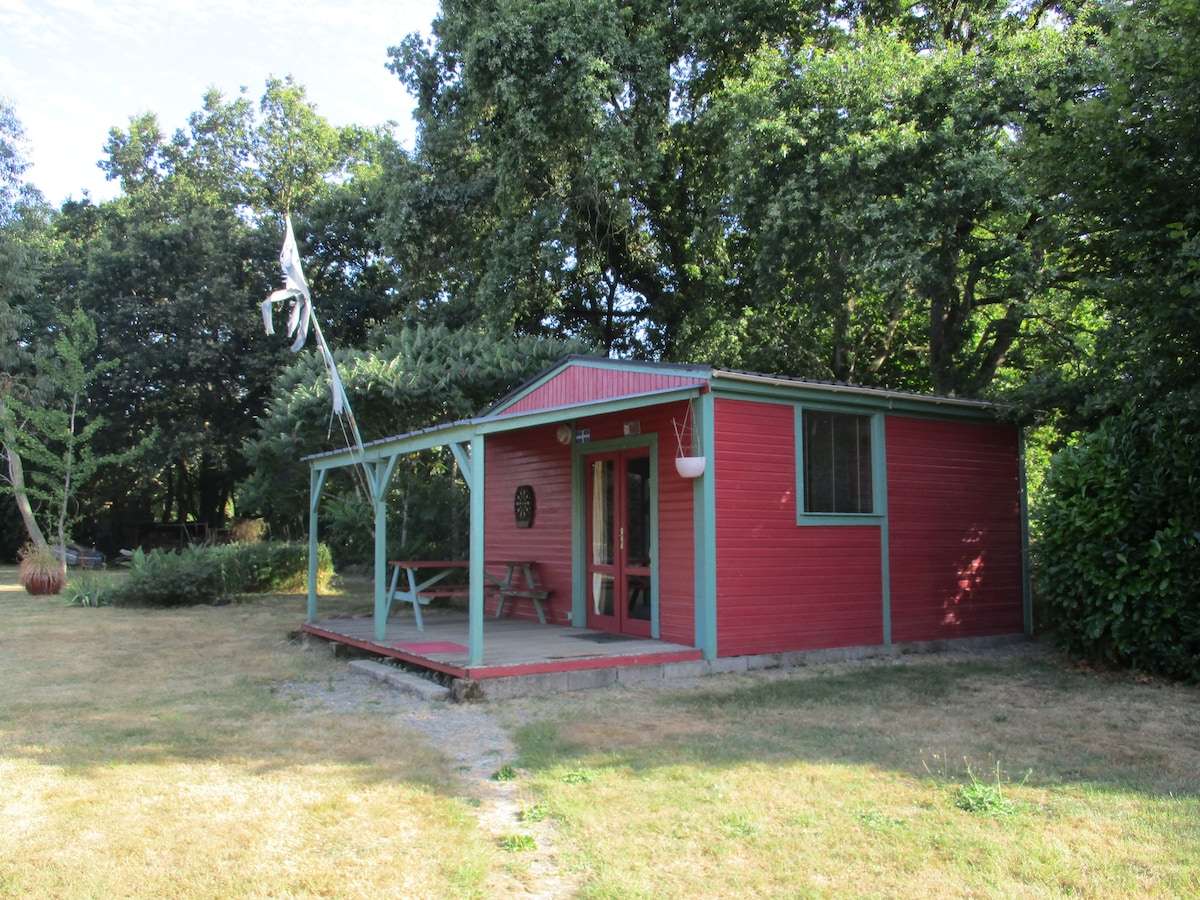 Located on the outskirts of Brittany, 30 minutes from the sea (St Nazaire/La Baule), 20 minutes from La Roche-Bernard, 1 hour from Broceliande Forest. Numerous opportunities for walks on site. Cottage located on a large wooded lot not far from the terrace of our house. View of the ruins of our old mill. At the back is a large 4 ha plot where some biker friends enjoy coming to lay their canvases in the summer. You can enjoy all the space available.