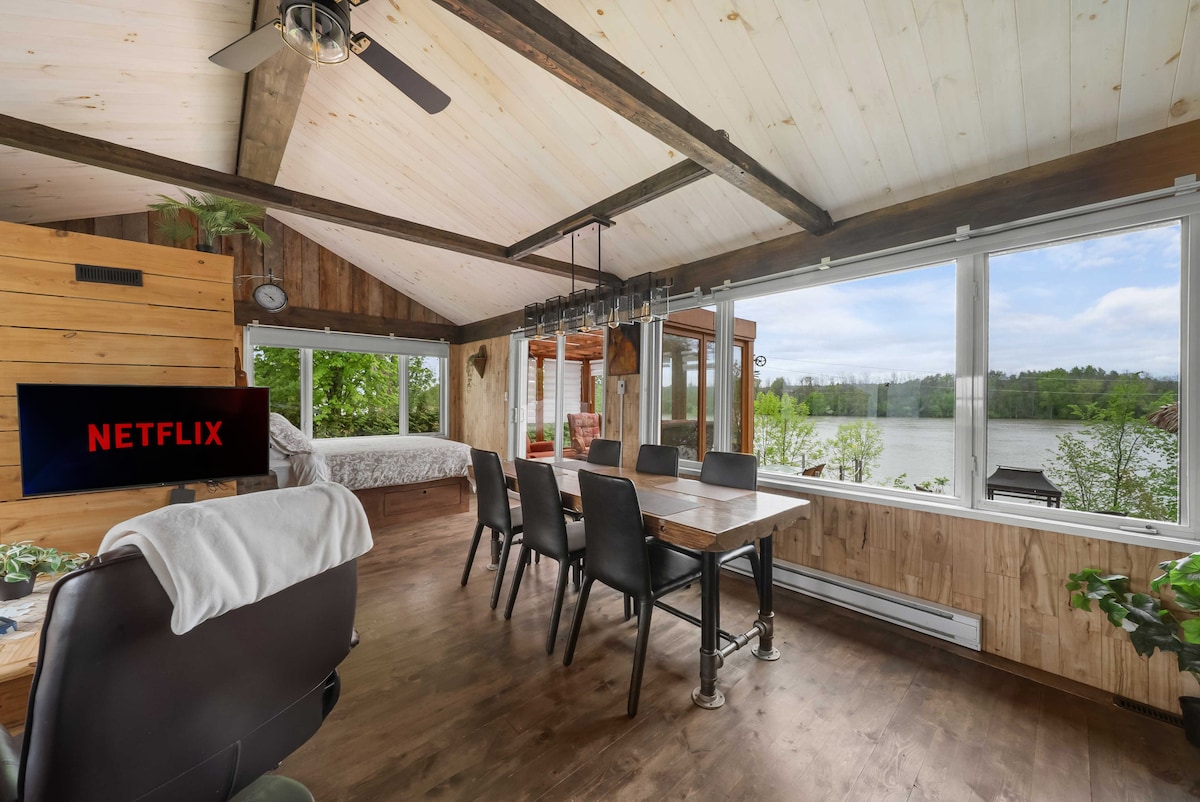 CITQ 306317 "Halte à la Rivière", the perfect cottage for a relaxing getaway in the heart of nature! Enjoy breathtaking panoramic views of the river from the cottage's open area, including the private sauna. Relax while admiring the breathtaking view or dive into the river for an unforgettable swim. Boats available to explore the waterfall near the cottage. Book now and experience magical moments in harmony with nature!