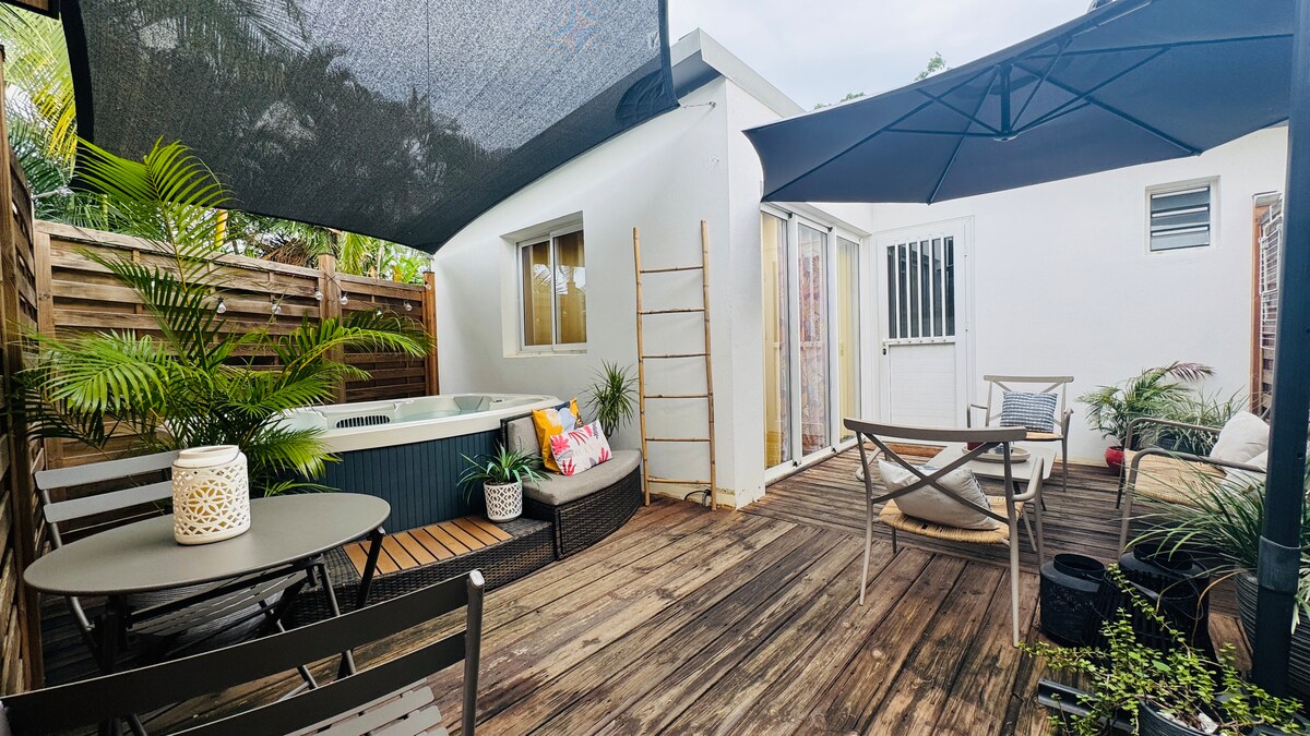 Take a break and relax in this peaceful oasis. Cozy and fully equipped studio for your vacation on the island or for your business trips. Enjoy its spacious exterior composed of a HOT TUB. The apartment is less than 15 minutes from the airport and the city center of St Denis.