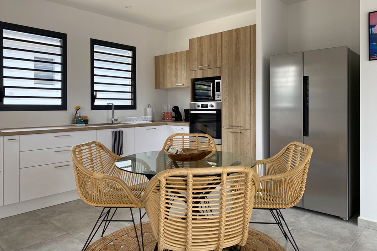Votre séjour sur l'île Papillon sera inoubliable dans ce havre de verdure au calme, à 5 minutes de la plage et du centre de Saint-François. Le logement proposé comprend 2 chambres avec couchage de qualité hôtellerie, une cuisine avec lave-vaisselle et lave-linge, micro-onde et four, un salon équipé d'un grand-écran la terrasse ombragée vous permettra de profiter de vos soirée alex cuisinier de profession vous proposera une table d'hôte le premier petit déjeuner sera offert par vos hôtes.