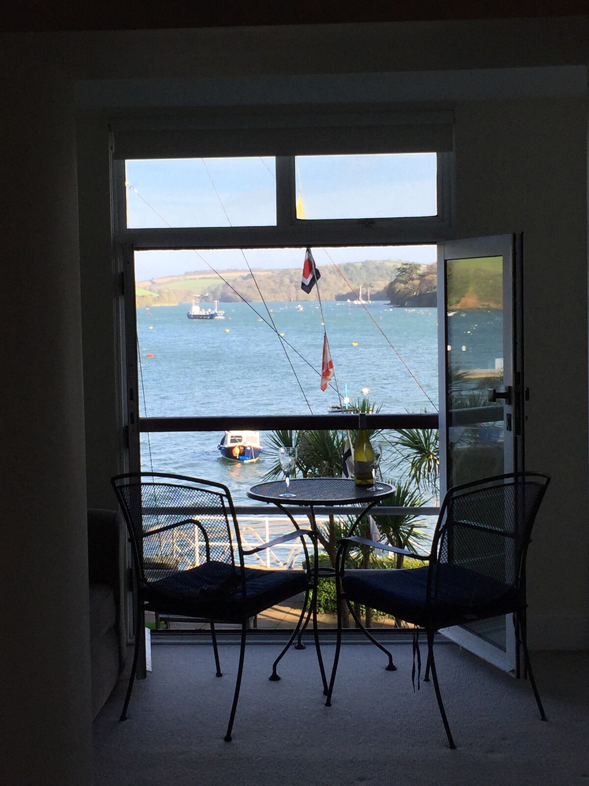 WATERSIDE Studio Apartment with large balcony on third floor overlooking private gardens and heated swimming pool (open end May to end September) with uninterrupted STUNNING views of Salcombe estuary - this is undoubtedly the most popular location in this small resort. Private car park and use of private mooring (Summer - up to 15 ft) Perfect location. The building has undergone refurbishment Winter 2018.