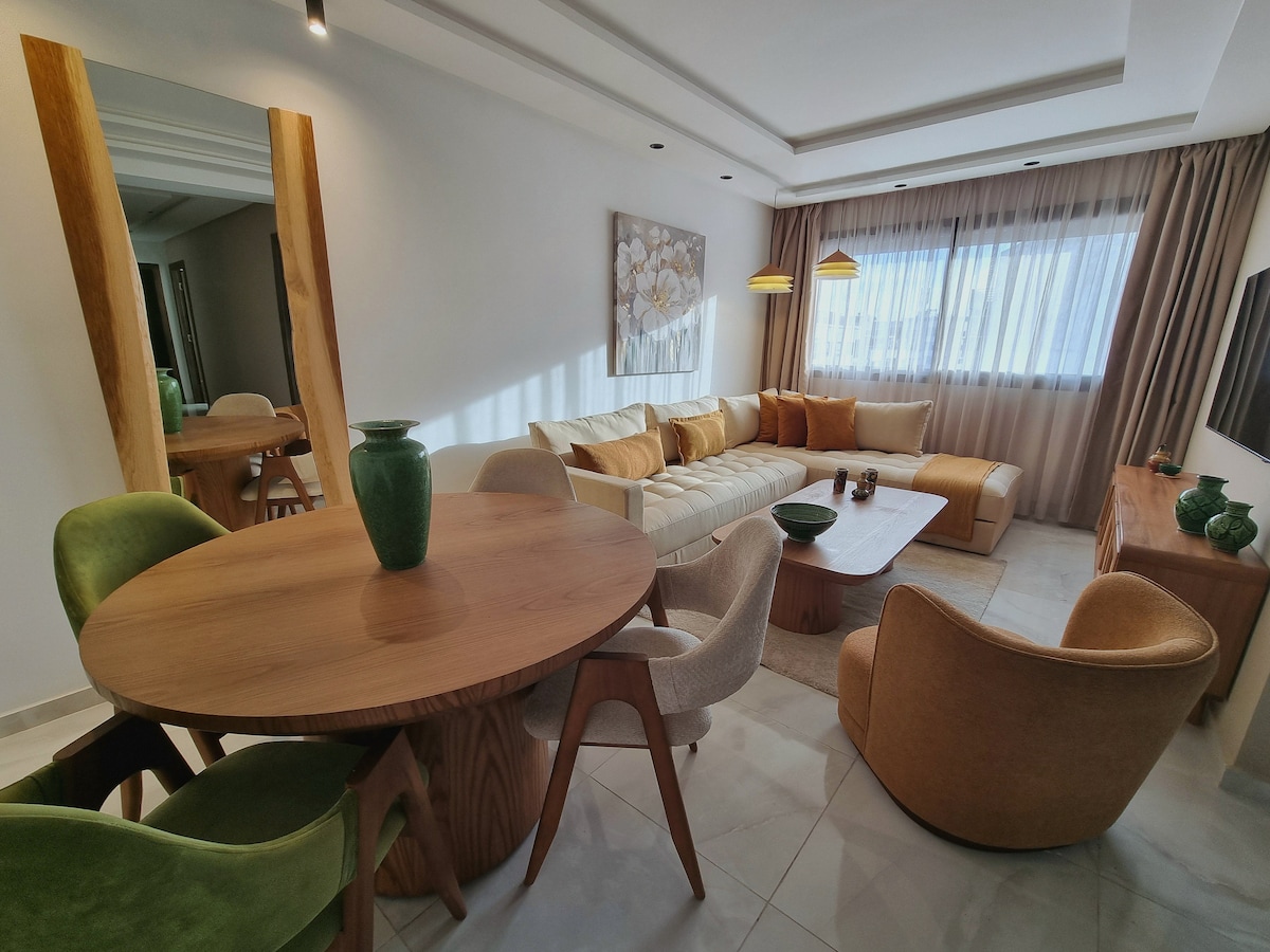 Luxury apartment in the heart of Rabat, elegant and bright. It has a high-end double bed, an equipped American kitchen, a bathroom with walk-in shower, Wi-Fi, air conditioning, Smart TV. 24/7 secure residence with elevator and private parking. Minutes from Rabat-Ville train station, nearby restaurants, cafes, shops, and Carrefour Market. Perfect for a practical, chic and comfortable stay.