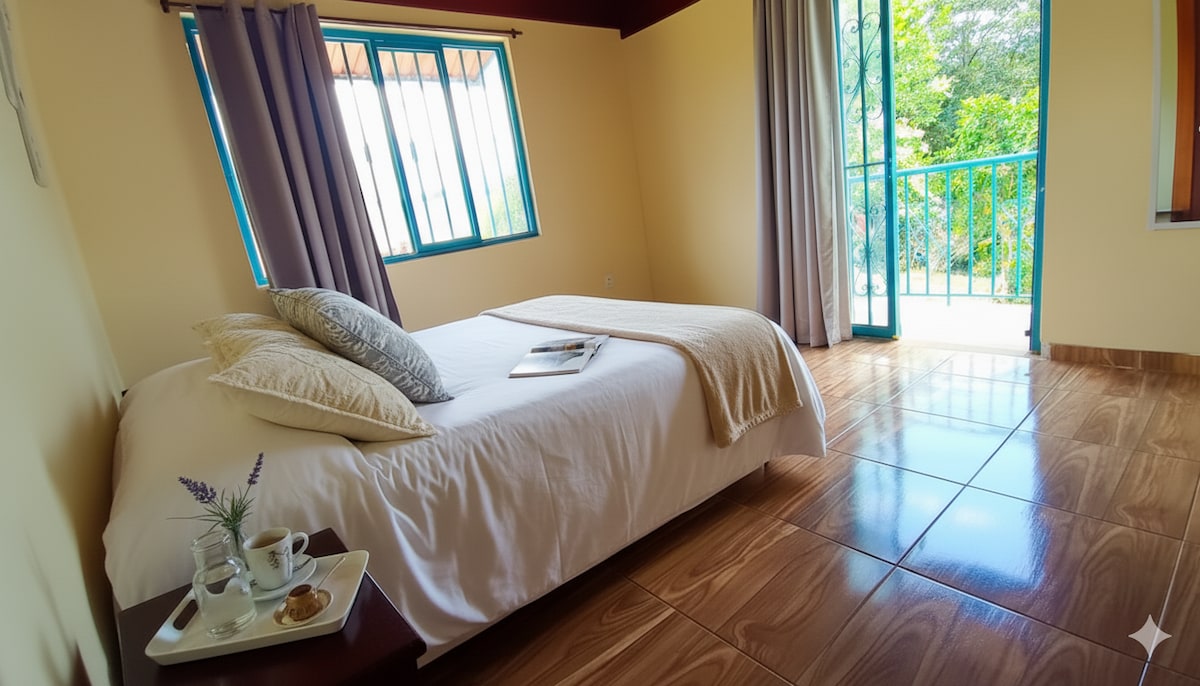 Acogedora aparta-suite de 35 m² con 3 ambientes: habitación con cama doble y baño privado con agua caliente, cocina completamente equipada y sala cómoda. Cuenta con un patio privado con jacuzzi para relajarte, wifi de alta velocidad y televisión. Es el lugar ideal para parejas que buscan descansar, reconectar entre sí y disfrutar de las actividades principales de Salento, Quindío. Un espacio perfecto para relajarte y explorar el encanto del Eje Cafetero.