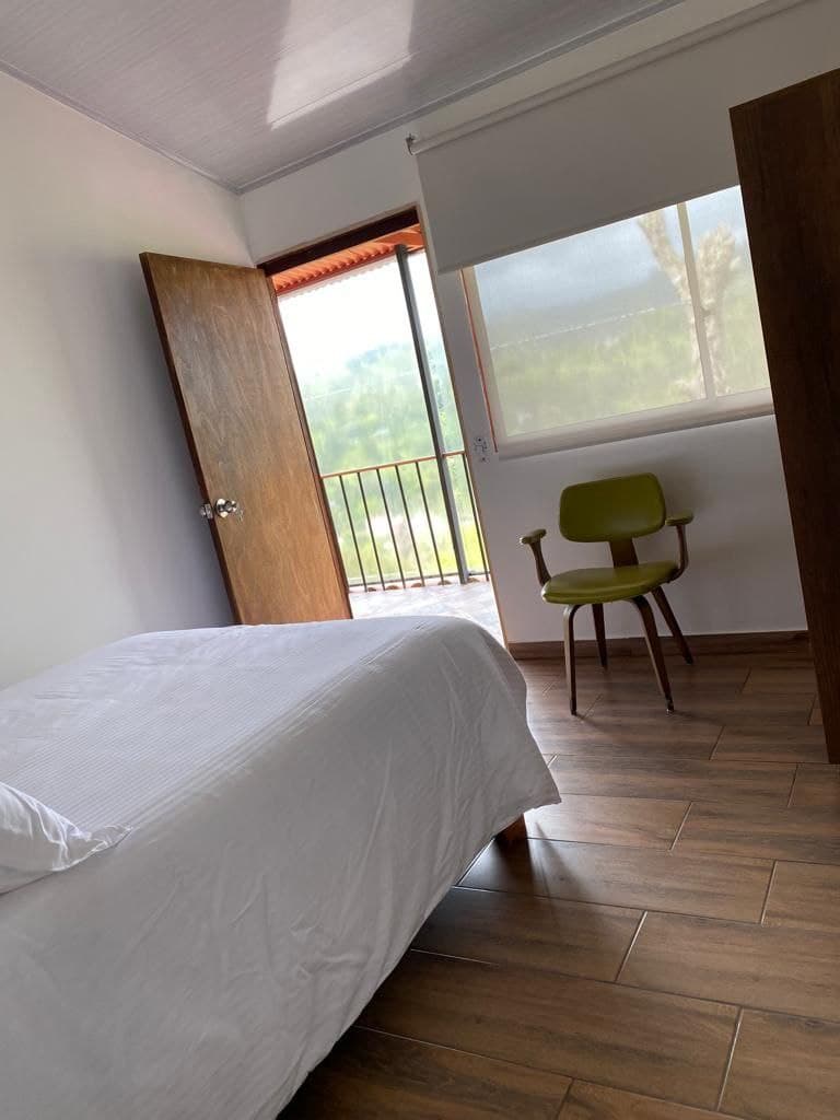 Our tranquil space is near Quindio's main attraction, El Valle del Cocora, Salento. We are perched on a cliff above Boquia with comfortable rooms and superb common spaces. Magdalena, has a panoramic view of the Boquia Valley below, a private bathroom and a shared terrace. Reach Salento by using the bus system which runs right by the house all the time. Alternatively, Salento is a 45 min hike away; the trail starts right next to our airbnb. Ubers are also an option with a 5 minute ride.