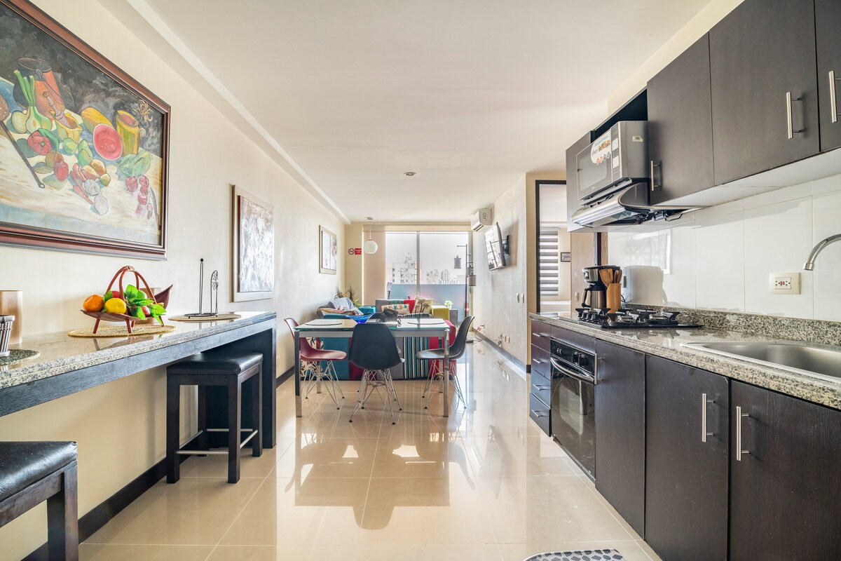 Comfort and elegance await you in this spectacular air-conditioned apartment located in Hilton BlueGardens (Barranquilla). Very close to the Buenavista shopping center and with all the comforts of home, the accommodation has: Wi-Fi, Smart TV, equipped kitchen, towels, bed linen and you can use the pool and gym in the building's common areas. Whether you're traveling for pleasure or business, our apartment is a must-see destination. We look forward to welcoming you!
