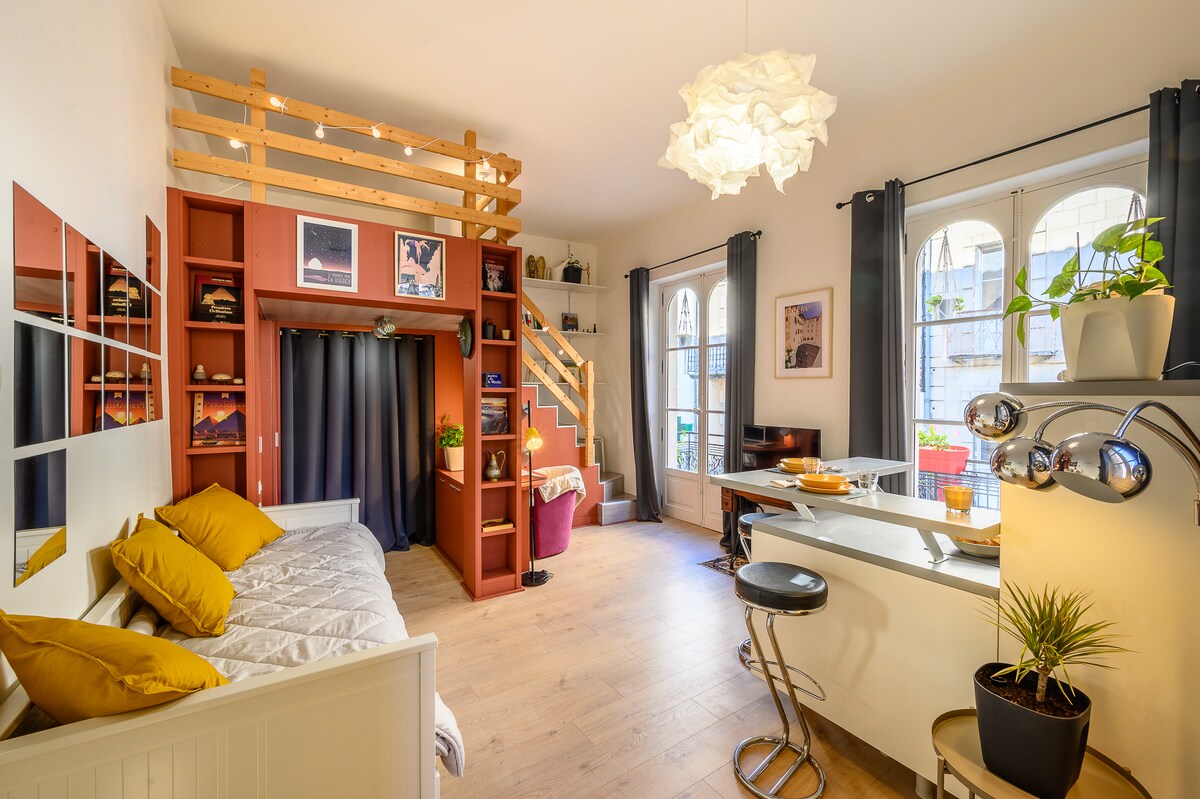 Welcome to the heart of the historic center of Figeac. Our renovated space combines modernity and history, offering old charm, facilities and comfort with two 160x200 beds, including a Japanese futon for a unique sleeping experience. WiFi, smart TV, amenities nearby, walk through the city. Enjoy serenely the shaded and private terrace. Discover with pleasure the charm of the Lot, a unique experience where past and present intertwine harmoniously.