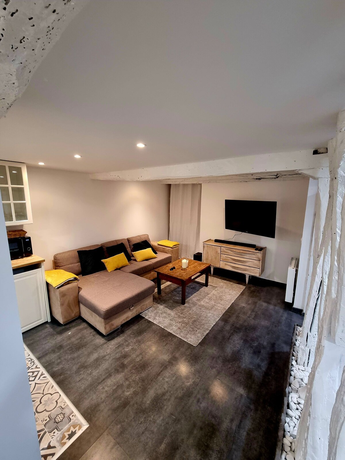 Kick back and relax in this calm, stylish space. . Ground floor apartment, with its independent entrance in a condominium of only 2 apartments. Located in the center of Villefranche-de-Lauragais. . This cozy, elegant apartment, in a Japandi style, will allow you to spend a pleasant evening or weekend. . It consists of an equipped kitchen, dining area, living room with desk and a cozy sleeping area with its bathroom and very large shower.