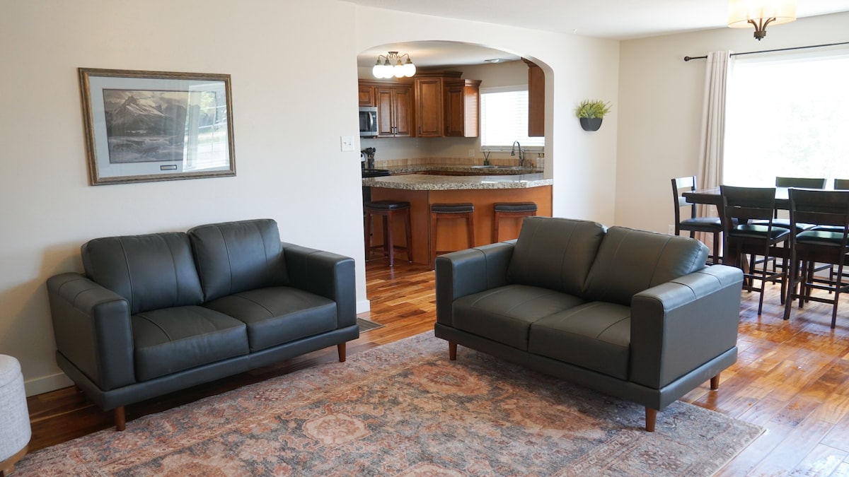 This newly built detached garage apartment offers a bright, open living space with plenty of natural light. Enjoy a fully equipped kitchen, a comfortable living area, a large deck overlooking the Beaverhead Mountains, and a peaceful bedroom. The bedroom is designed for restful sleep, featuring blackout shades for a dark, cozy atmosphere and a plush memory foam mattress with soft, supportive pillows. We live in our house next to the guesthouse and love our property, and we know you will too!
