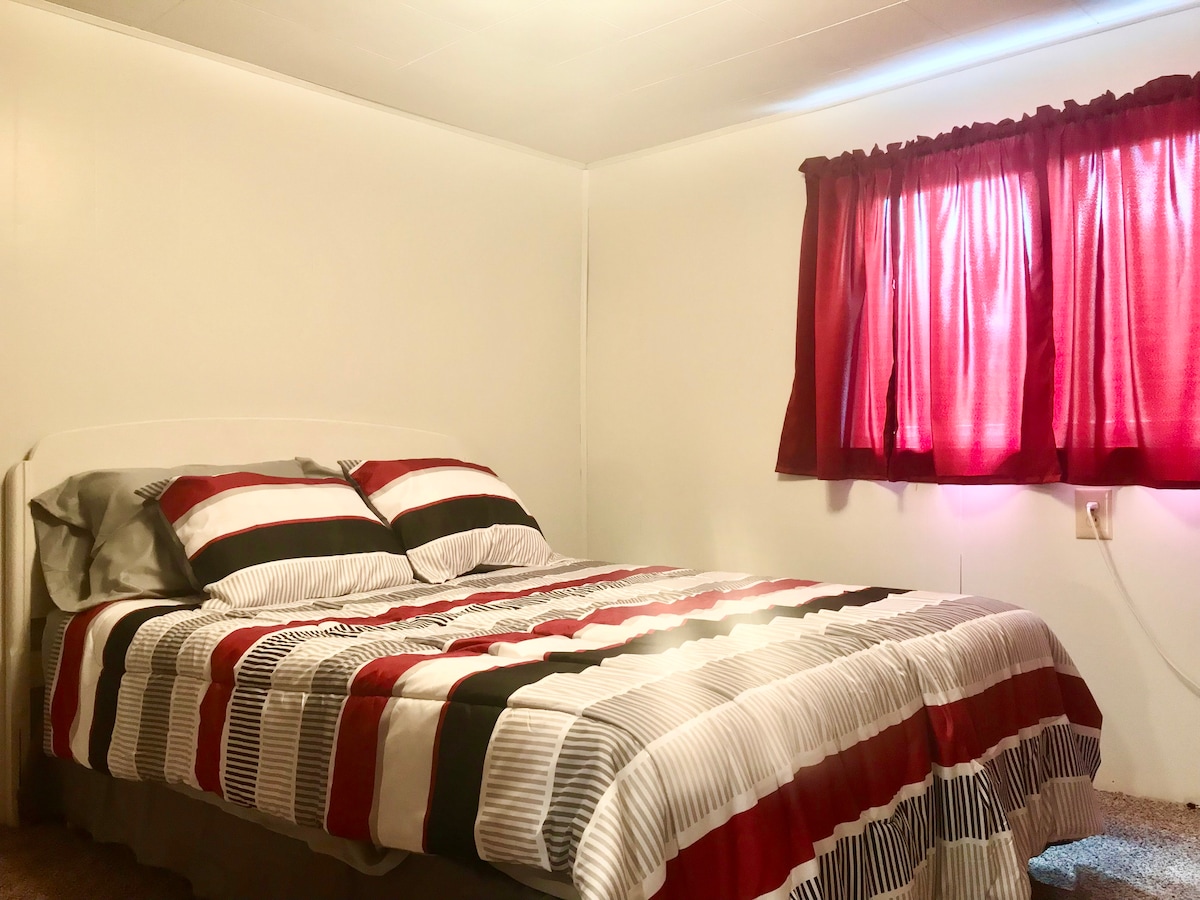 Charming 3-bedroom house at the end of quiet street. Mountain views and minimal neighbors make this a quiet and peaceful place to stay. One king bed, one queen, and a queen over queen bunk bed. Family friendly with pack n play. Large open kitchen and back patio with BBQ, table and backyard. Large tub in master bathroom. Two parking spots in driveway plus street parking. No garage access. Minutes from the hockey rink, downtown restaurants, breweries, outdoor activities, and river floats.