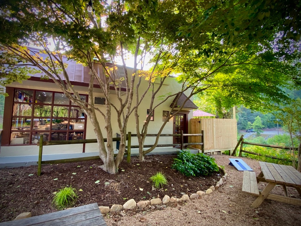 A trip to charming Saluda is like a step back in time and Liberty Hall log cabin welcomes you to sit a while on the front porch and take in the spectacular mountain views. A hike on the nature conservancy trail right outside the front door and chasing fireflies at dusk make this an ideal spot to relax and unwind. Quaint downtown Saluda offers varied dining options and numerous breweries close by offer a refreshing break after tubing down the Green River or hiking down to gaze at a waterfall.