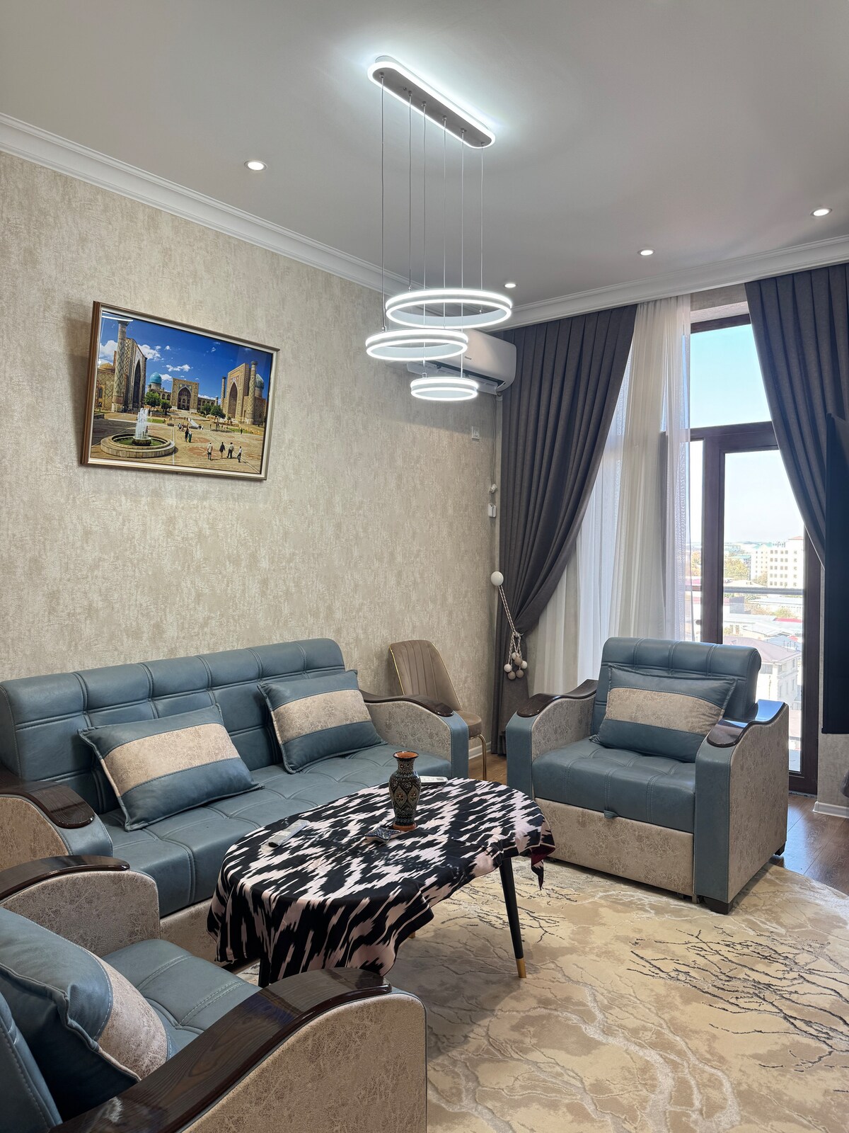 Discover our expansive and quiet apartment in Samarkand's vibrant center, close to the railway station. This spacious home offers a tranquil ambiance despite its central location. With abundant nearby shops and a serene atmosphere, it's your ideal place. Experience the charm of a quiet haven in the midst of the city's pulse.