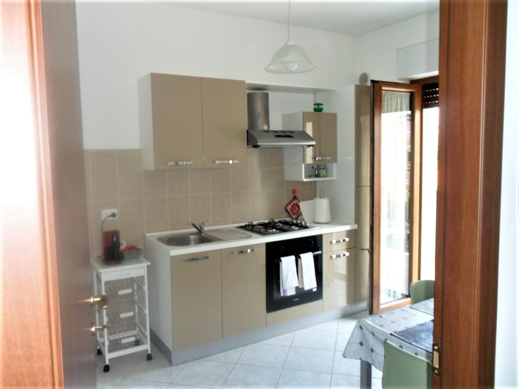 Grazioso bilocale ideale per una coppia in viaggio, o per chi lavora, al secondo piano servito da ascensore, composto da cucina attrezzata di tutto e con lavatrice; camera-soggiorno con letto matrimoniale, divano 3 posti, tv, scrivania, ventilatore a soffitto. 100 m da spiaggia libera con chiosco bevande e doccia; 700 m da stazione ferroviaria, terminal bus; 300 m da zona locali; zona centrale e di passeggio (parco lineare "strada parco"), ampiamente servita da mezzi di trasporto pubblico