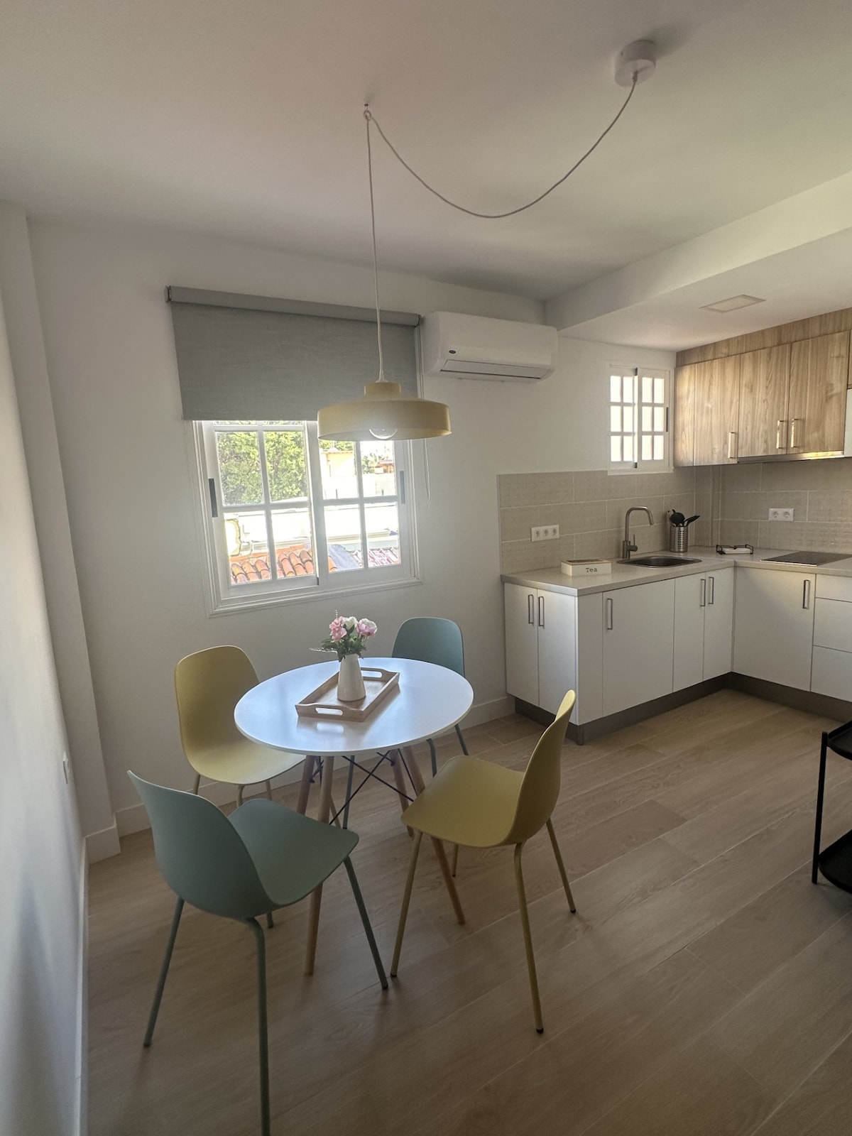 Renovated penthouse in San Andrés, 1 min from the pier and 5 min from Las Teresitas. Minimalist design in white and wood. Two bedrooms (double and bunk beds), full bathroom and terrace with shower and ocean and mountain views. All new: air conditioning, Smart TV with Netflix, washing machine, refrigerator, microwave, toaster, kettle, juicer and kitchenware. Includes bed linen and towels. Downtown area with restaurants, shops and pharmacy just meters away.