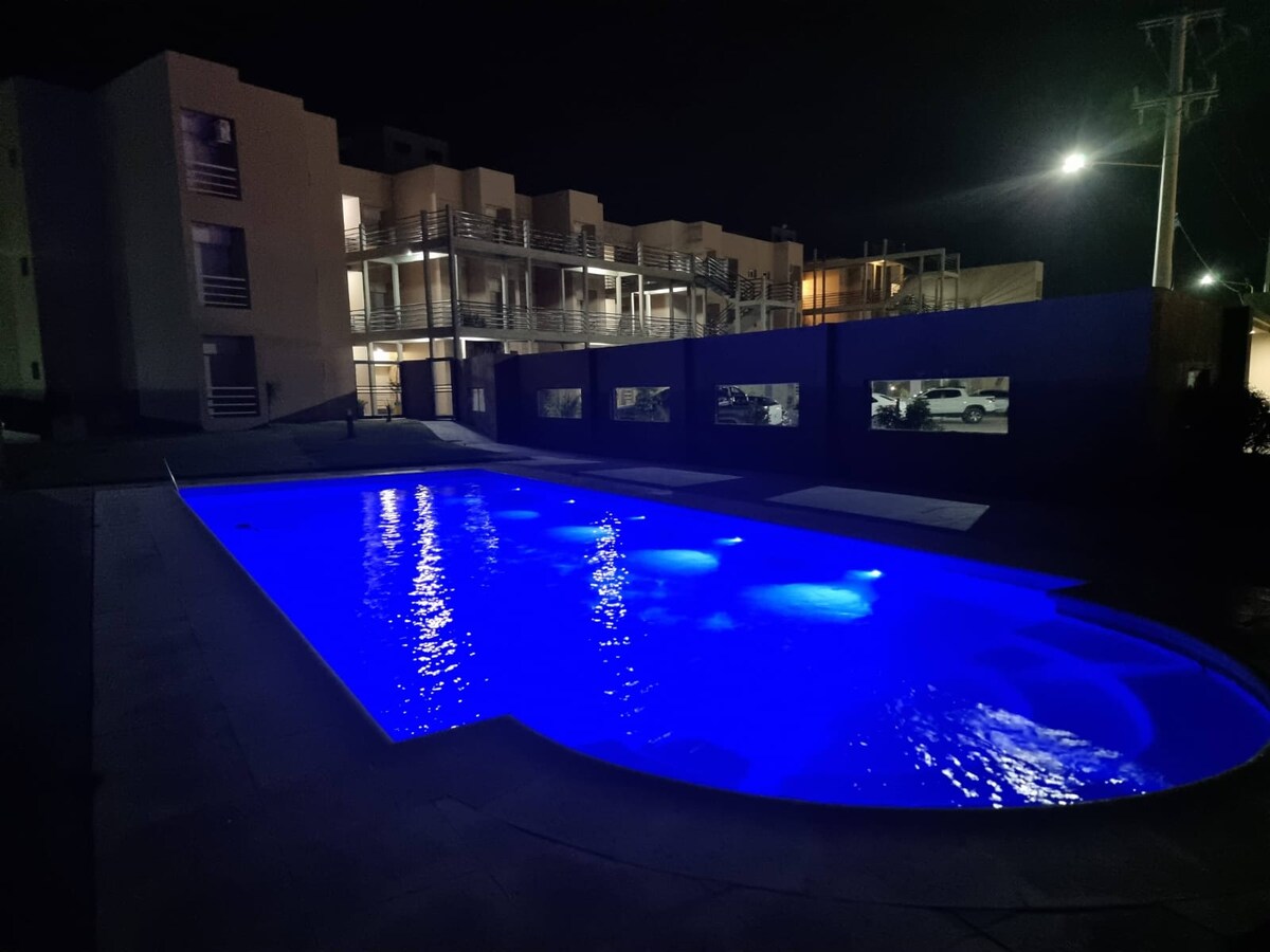 This peaceful off-grid apartment is surrounded by nature located just 500m from Playa Los Coloradas and a few minute drive from Las Grutas town center. The perfect place to get away. Equipped with plenty places to relax: the balcony, rooftop terrace with a beautiful view, or you can cool off by the pool. Theres trail that goes out to the beach in-front only a 4 minute walk away. The night sky is absolutely breathtaking.
